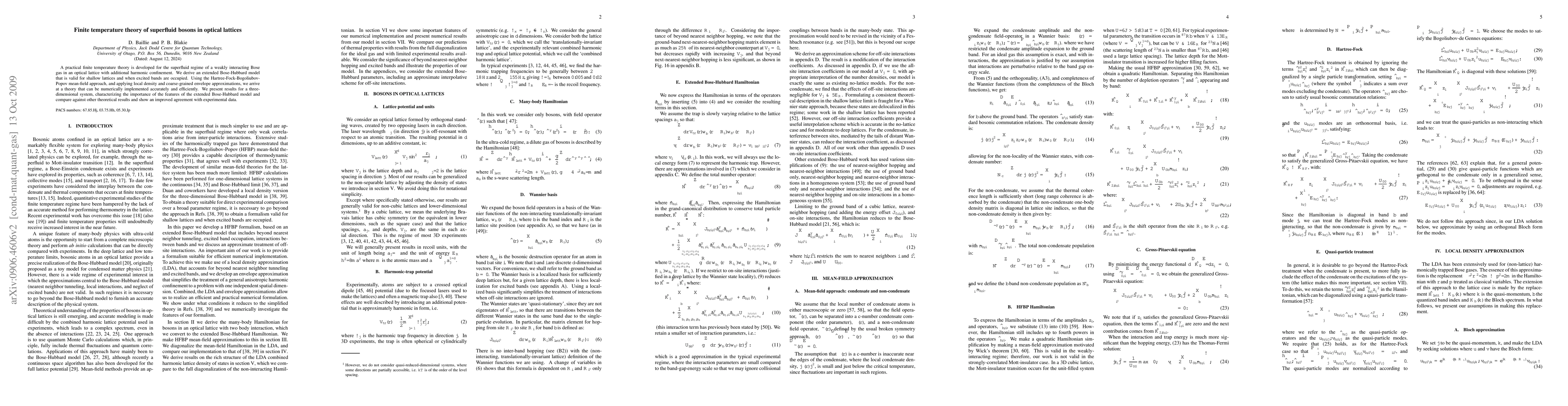 This paper develops a finite temperature theory for superfluid bosons in optical lattices, deriving an extended Bose-Hubbard model that accounts for shallow lattices and occupied excited bands. The theory is implemented using the Hartree-Fock-Bogoliubov-Popov approach and shows improved agreement with experimental data compared to other models.