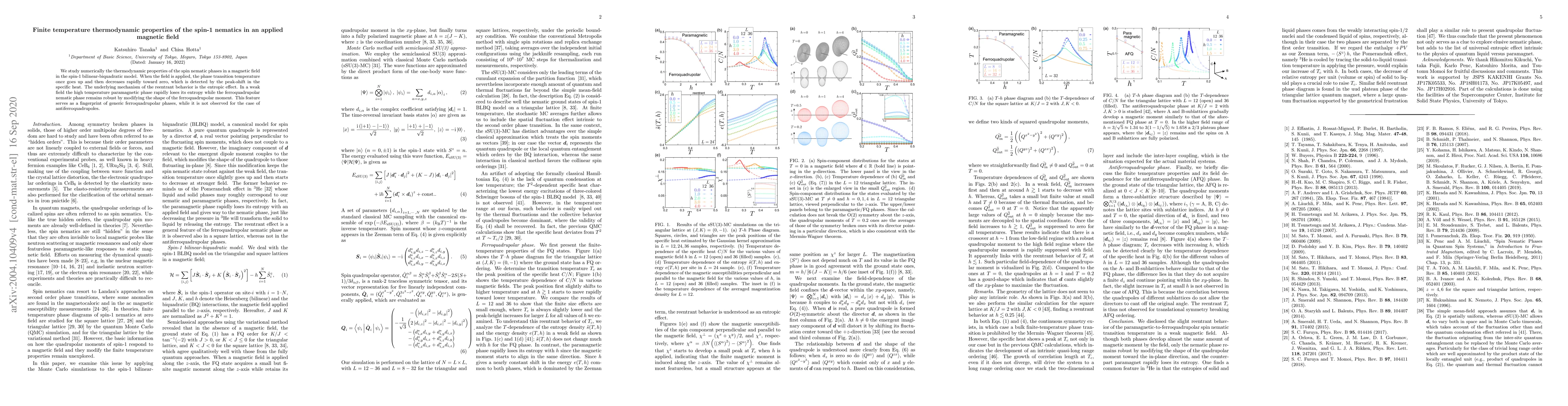 Researchers studied the behavior of spin nematic phases in a magnetic field, finding that their phase transition temperature initially increases then decreases rapidly as the field strengthens, driven by an entropic effect.