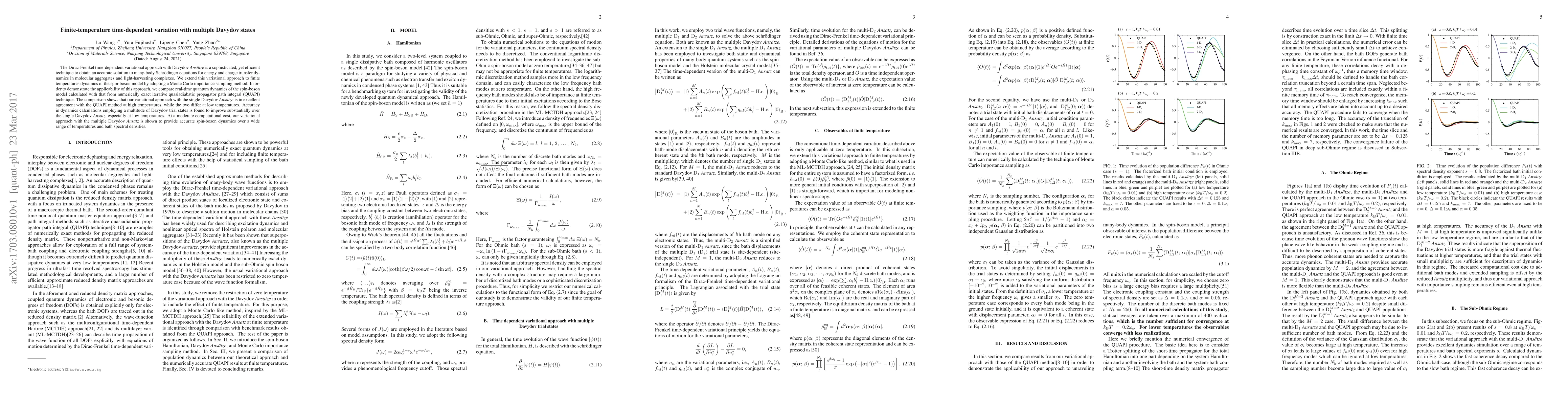 This research paper uses a variational approach to simulate energy transfer dynamics in molecular aggregates at finite temperatures, achieving excellent agreement with numerical methods at high temperatures but improving accuracy with multiple Davydov trial states, especially at low temps.
