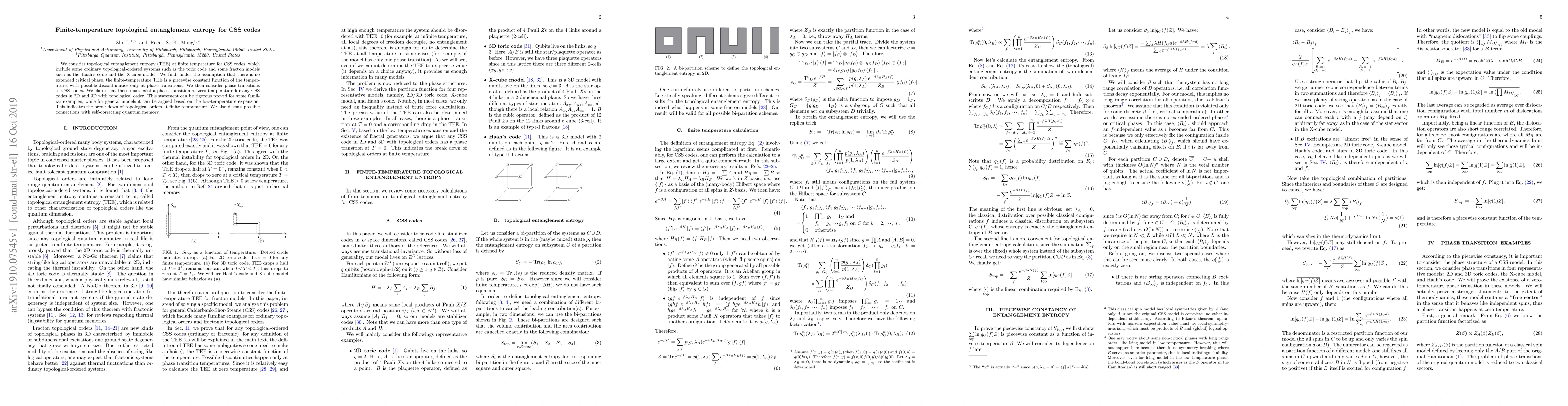 This paper investigates the finite-temperature topological entanglement entropy (TEE) for CSS codes, revealing that TEE is piecewise constant with potential discontinuities at phase transitions. It argues for the existence of a zero-temperature phase transition in 2D and 3D CSS codes with topological order, indicating the breakdown of topological orders at finite temperatures, and discusses potential links to self-correcting quantum memory.