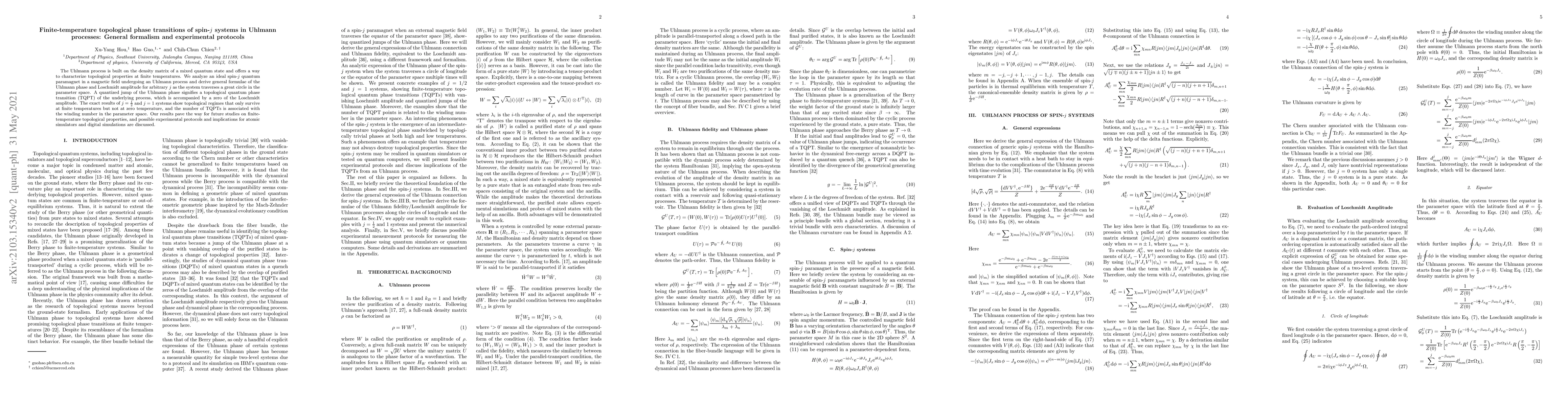 This paper develops a formalism for characterizing topological properties in spin-$j$ systems using Uhlmann processes at finite temperatures, revealing topological quantum phase transitions (TQPTs) that occur only at non-zero temperatures. It also outlines potential experimental protocols for atomic simulators and digital simulations.