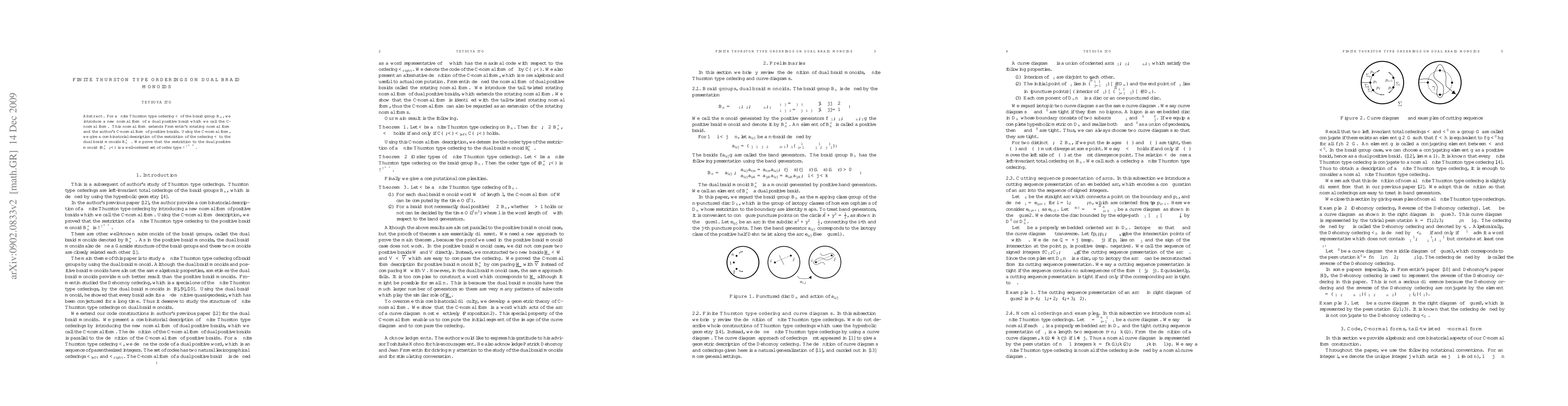 The paper introduces a new C-normal form for dual positive braids, extending existing forms, and provides a combinatorial description of a Thurston type ordering on dual braid monoids. It proves that the restriction of this ordering to the dual positive monoid is well-ordered with order type \(\omega^{\omega^{n-2}}\).