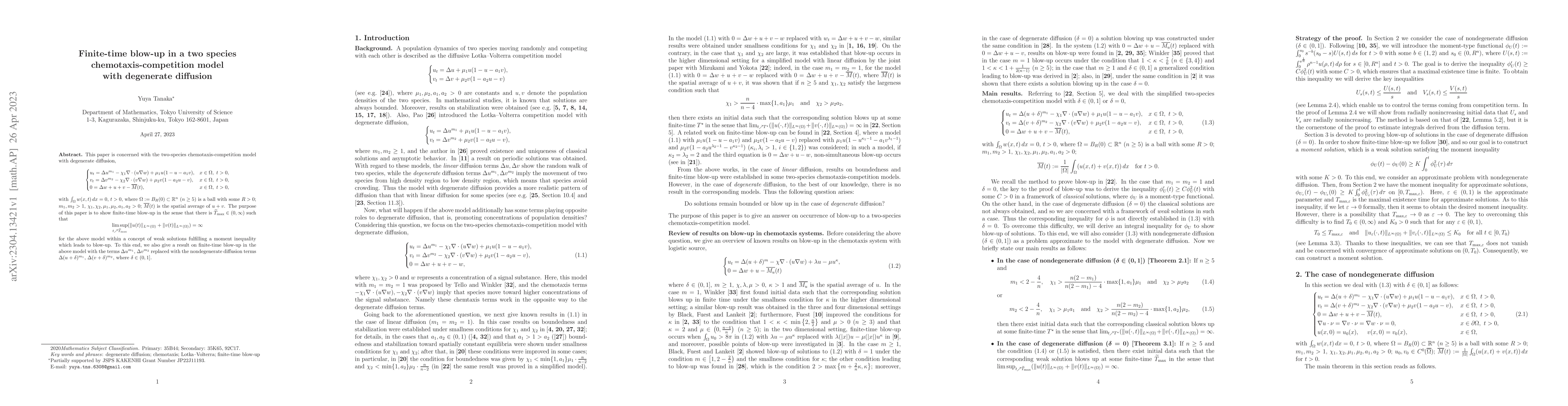 This paper investigates a two-species chemotaxis-competition model with degenerate diffusion, demonstrating finite-time blow-up where the solutions become unbounded as time approaches a critical value. The model also explores the scenario with nondegenerate diffusion to compare the effects.
