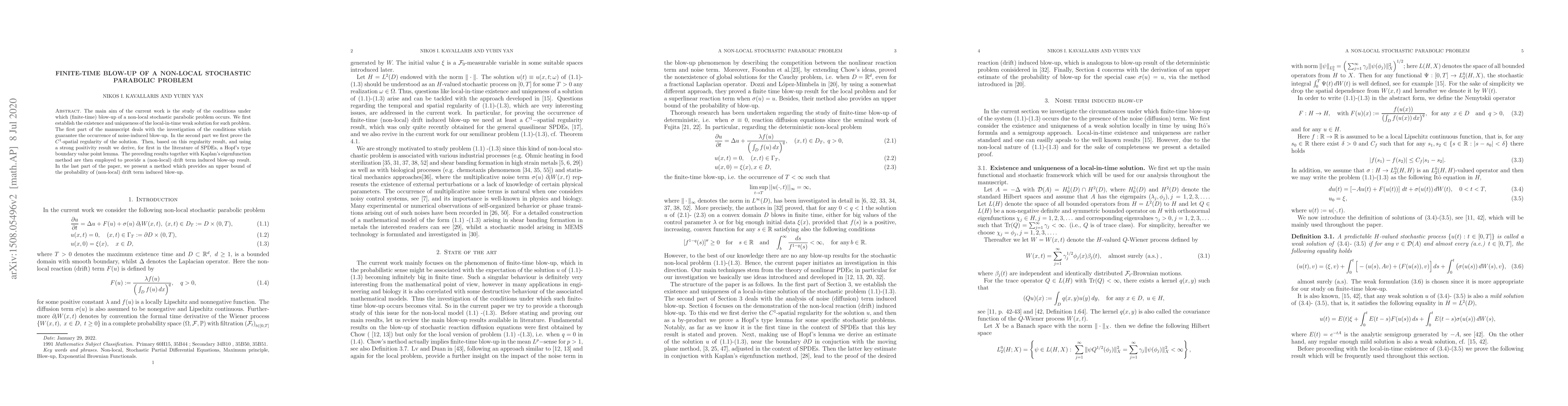 A recent study investigates conditions for blow-up in non-local stochastic parabolic problems, establishing a method to bound the probability of blow-up and providing insights into its causes.