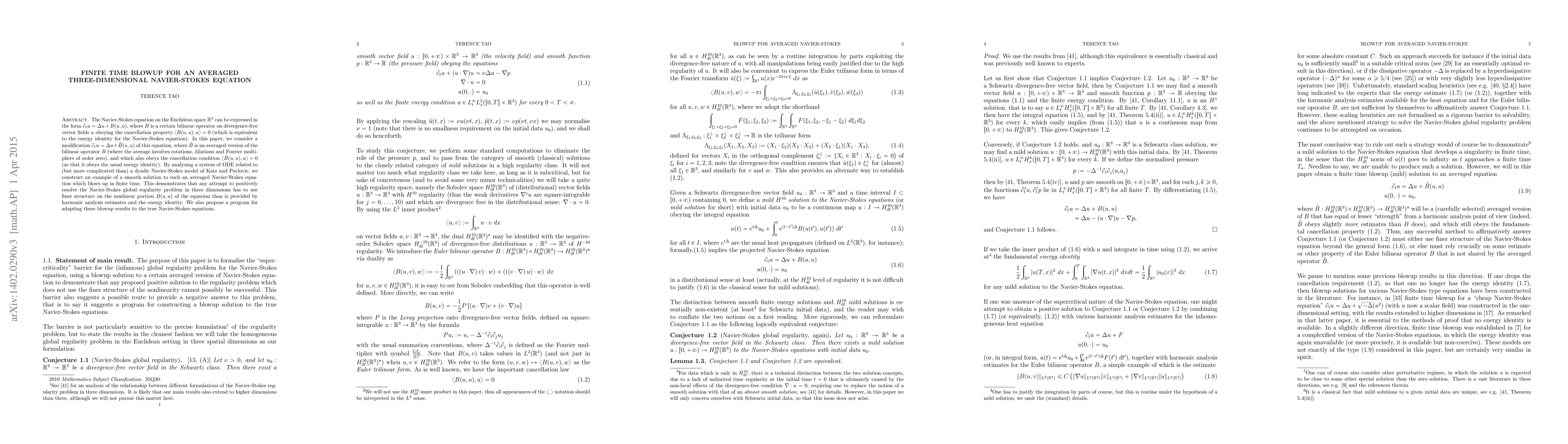 This paper constructs a smooth solution to an averaged version of the three-dimensional Navier-Stokes equation that blows up in finite time, demonstrating the necessity of finer structure in resolving the global regularity problem. The findings suggest that harmonic analysis and energy identity alone are insufficient for such resolution.