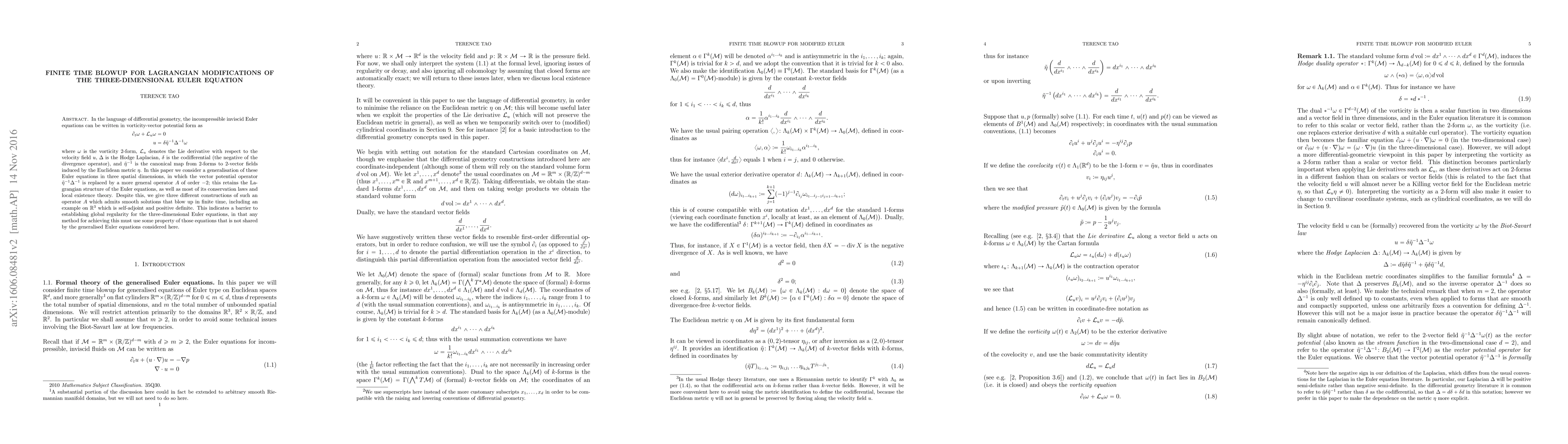 In the language of differential geometry, the incompressible inviscid Euler equations can be written in vorticity-vector potential form as \begin{align*} \partial_t \omega + {\mathcal L}_u \omega &= 0\\ u &= \delta \tilde \eta^{-1} \Delta^{-1} \omega \end{align*} where $\omega$ is the vorticity $2$-form, ${\mathcal L}_u$ denotes the Lie derivative with respect to the velocity field $u$, $\Delta$ is the Hodge Laplacian, $\delta$ is the codifferential (the negative of the divergence operator), and $\tilde \eta^{-1}$ is the canonical map from $2$-forms to $2$-vector fields induced by the Euclidean metric $\eta$. In this paper we consider a generalisation of these Euler equations in three spatial dimensions, in which the vector potential operator $\tilde \eta^{-1} \Delta^{-1}$ is replaced by a more general operator $A$ of order $-2$; this retains the Lagrangian structure of the Euler equations, as well as most of its conservation laws and local existence theory. Despite this, we give three different constructions of such an operator $A$ which admits smooth solutions that blow up in finite time, including an example on ${\bf R}^3$ which is self-adjoint and positive definite. This indicates a barrier to establishing global regularity for the three-dimensional Euler equations, in that any such method must use some property of those equations that is not shared by the generalised Euler equations considered here.
