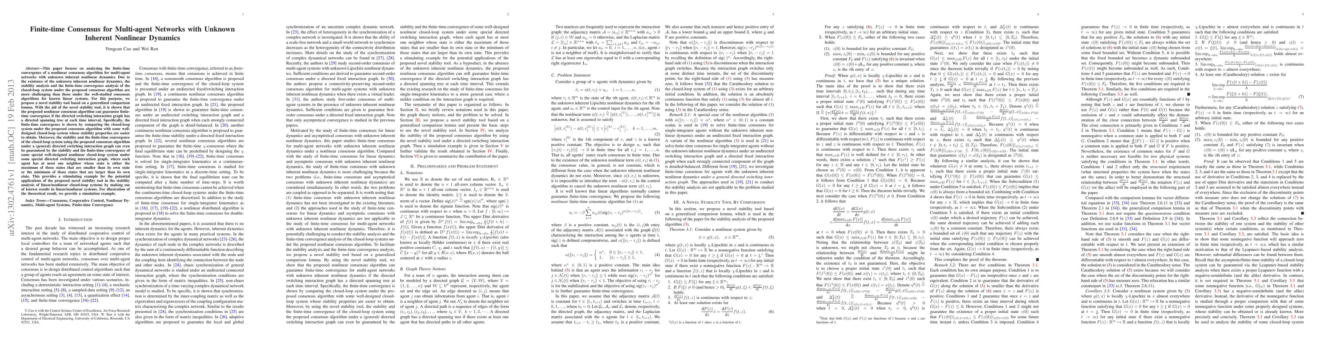 This paper proposes a novel nonlinear consensus algorithm for multi-agent networks with unknown inherent nonlinear dynamics, ensuring finite-time convergence via a generalized comparison lemma. The stability and convergence properties are demonstrated through comparisons with simpler, well-designed systems, providing a new stability analysis tool for linear/nonlinear systems.