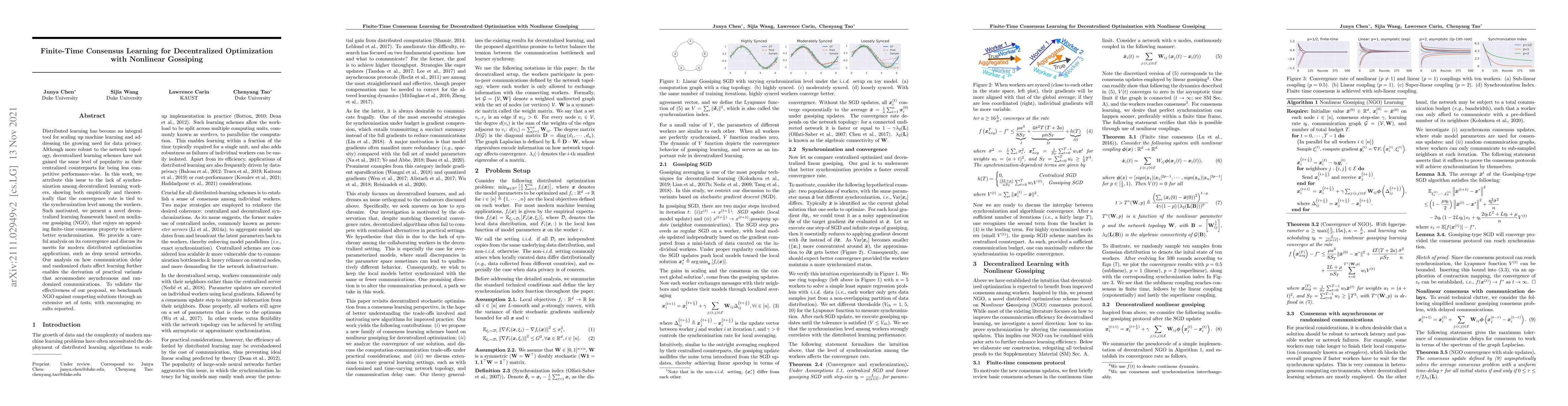 Distributed learning has become an integral tool for scaling up machine learning and addressing the growing need for data privacy. Although more robust to the network topology, decentralized learning schemes have not gained the same level of popularity as their centralized counterparts for being less competitive performance-wise. In this work, we attribute this issue to the lack of synchronization among decentralized learning workers, showing both empirically and theoretically that the convergence rate is tied to the synchronization level among the workers. Such motivated, we present a novel decentralized learning framework based on nonlinear gossiping (NGO), that enjoys an appealing finite-time consensus property to achieve better synchronization. We provide a careful analysis of its convergence and discuss its merits for modern distributed optimization applications, such as deep neural networks. Our analysis on how communication delay and randomized chats affect learning further enables the derivation of practical variants that accommodate asynchronous and randomized communications. To validate the effectiveness of our proposal, we benchmark NGO against competing solutions through an extensive set of tests, with encouraging results reported.