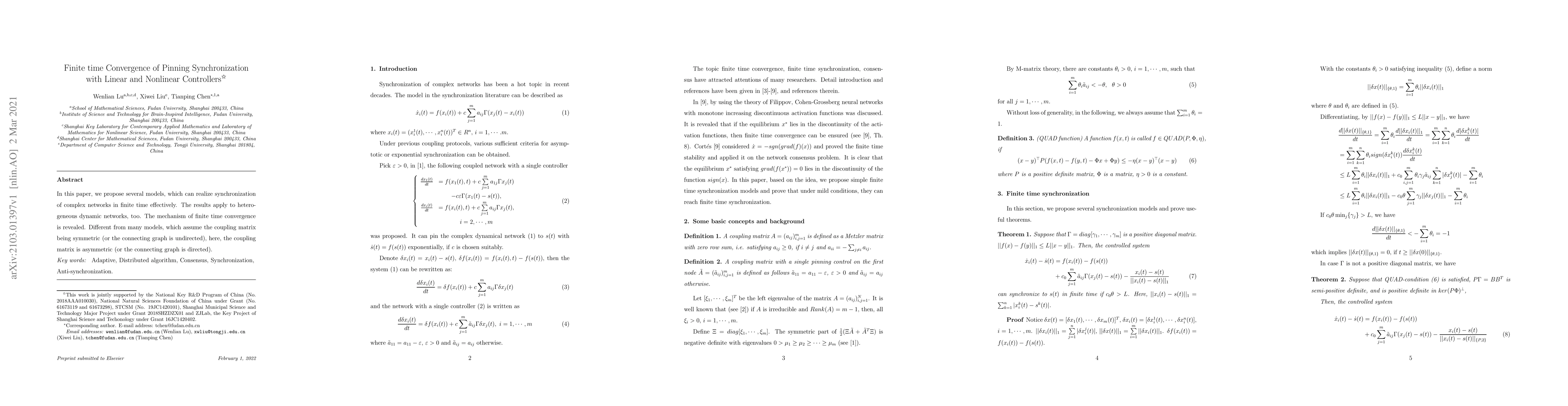 This paper proposes models for achieving synchronization in complex networks in finite time, applicable to heterogeneous networks. Unlike many existing models, it considers asymmetric coupling matrices and directed graphs, revealing the mechanism of finite time convergence.