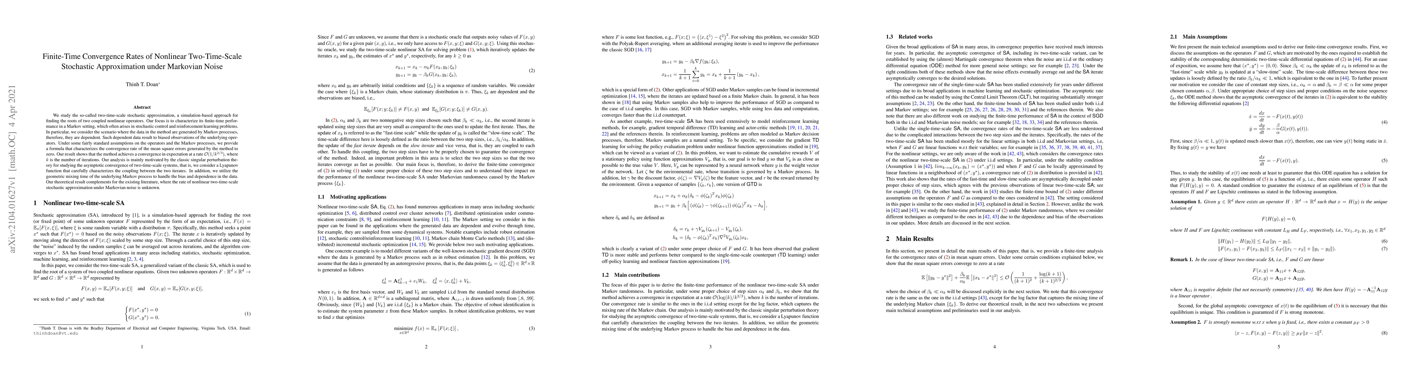 This paper investigates the finite-time convergence rates of a two-time-scale stochastic approximation method under Markovian noise, achieving a convergence rate of $\mathcal{O}(1/k^{2/3})$. The analysis leverages singular perturbation theory and the geometric mixing time of Markov processes to address data dependence and bias.