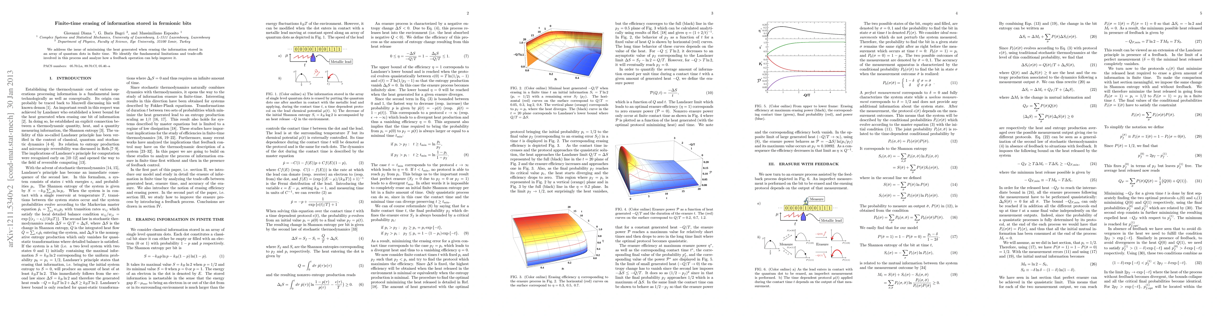 This paper explores minimizing heat generation during the finite-time erasure of information in fermionic bits stored in quantum dots, identifying the fundamental limitations and trade-offs, and demonstrating how feedback operations can enhance the process.