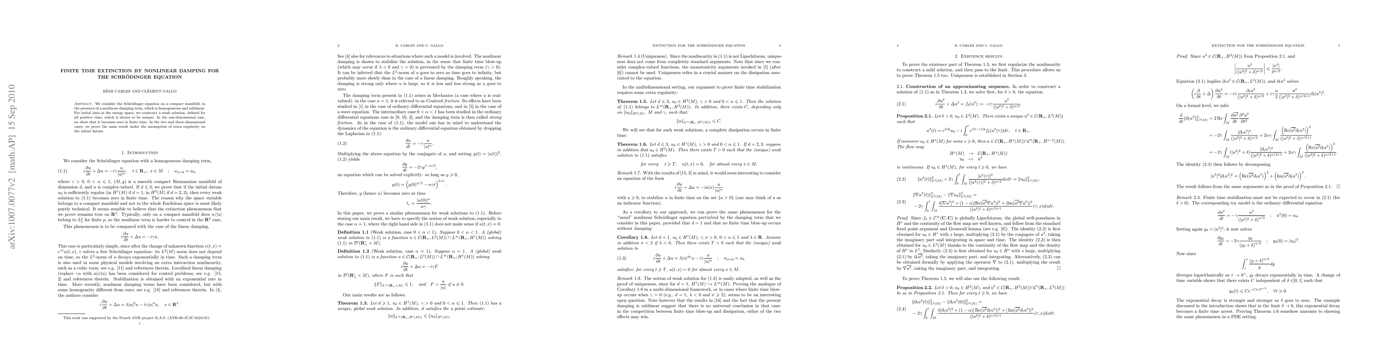 This paper investigates the Schrödinger equation with a nonlinear, sublinear damping term on a compact manifold. It constructs a unique weak solution that vanishes in finite time for initial data in the energy space, particularly in one dimension, and under extra regularity conditions in higher dimensions.