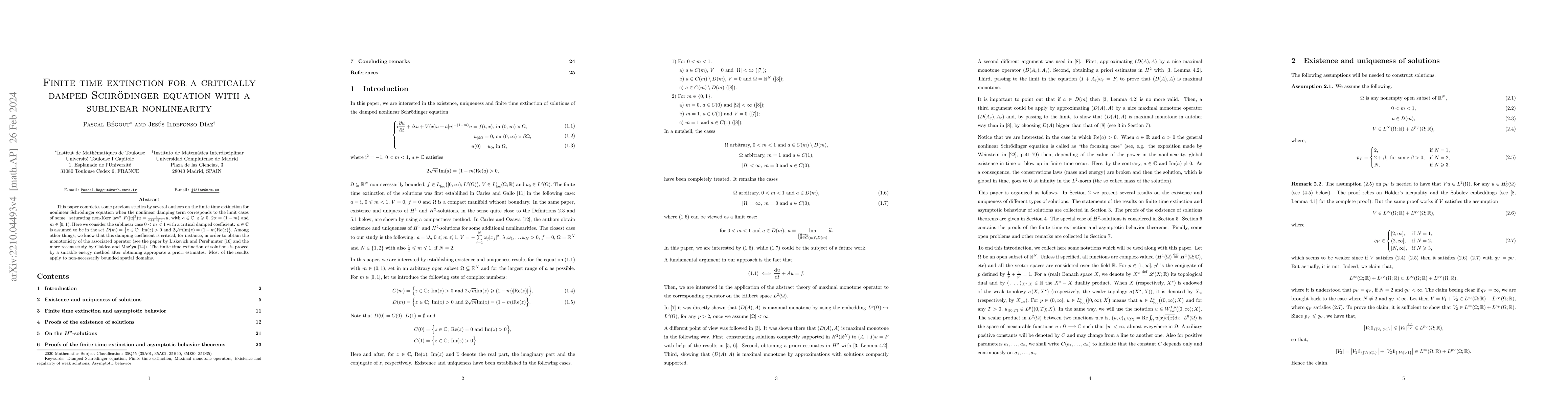 This paper proves finite time extinction for a critically damped Schrödinger equation with a sublinear nonlinearity, specifically for the case where the damping term follows a sublinear saturating non-Kerr law. The study employs an energy method to achieve the result, with the damping coefficient being critical for maintaining the monotonicity of the associated operator.