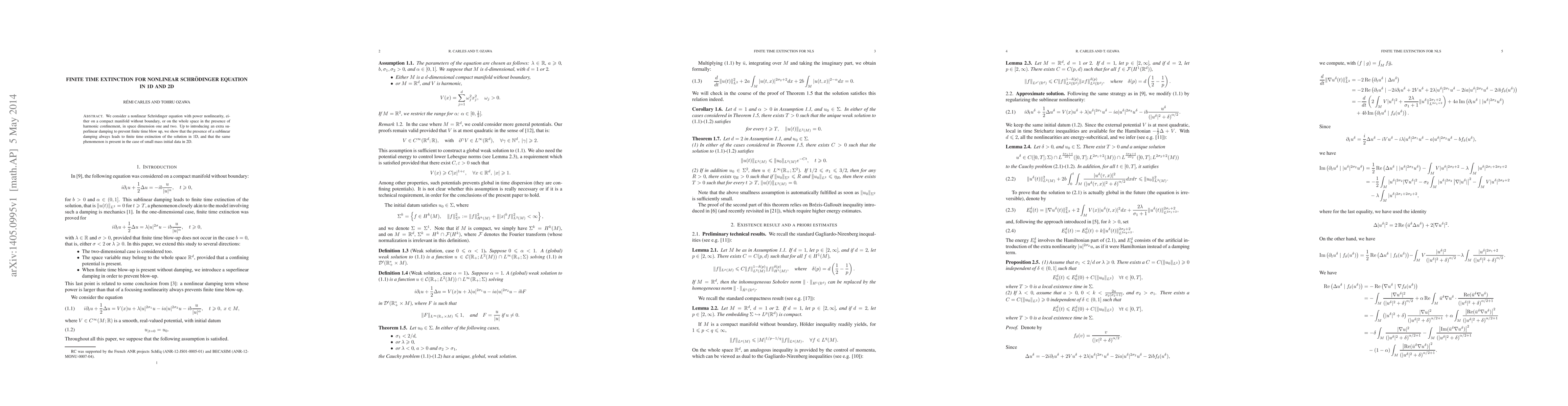 Summary: This paper investigates the finite time extinction behavior of solutions to a nonlinear Schrödinger equation with sublinear damping in 1D and 2D. The study shows that sublinear damping leads to finite time extinction in 1D, and this effect occurs for small mass initial data in 2D, even with harmonic confinement.