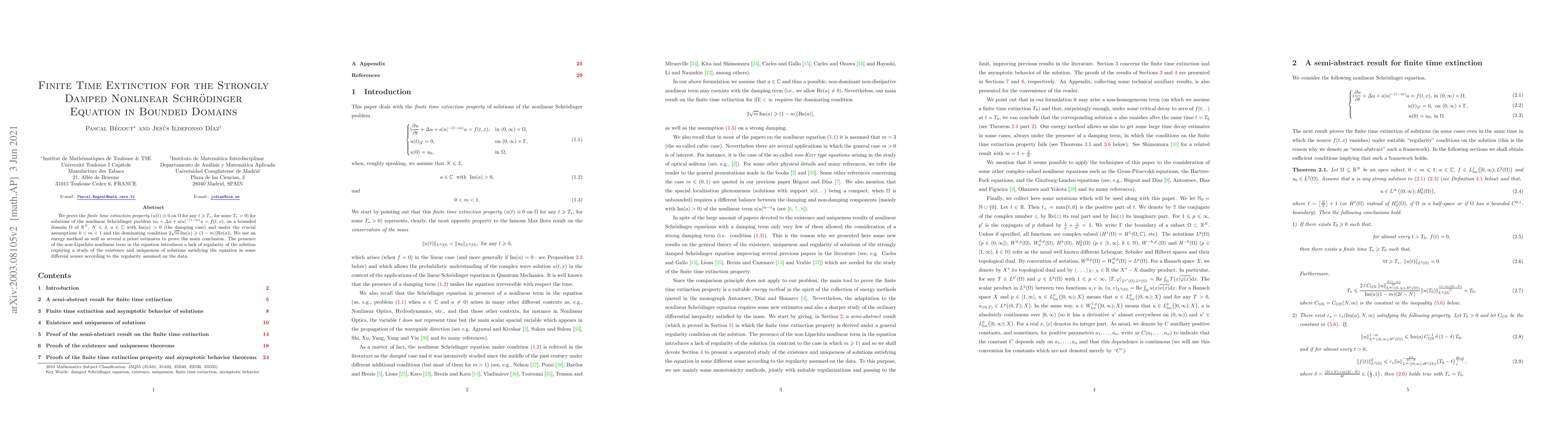$\Im(a)>0$ (the damping case) and under the crucial assumptions $0