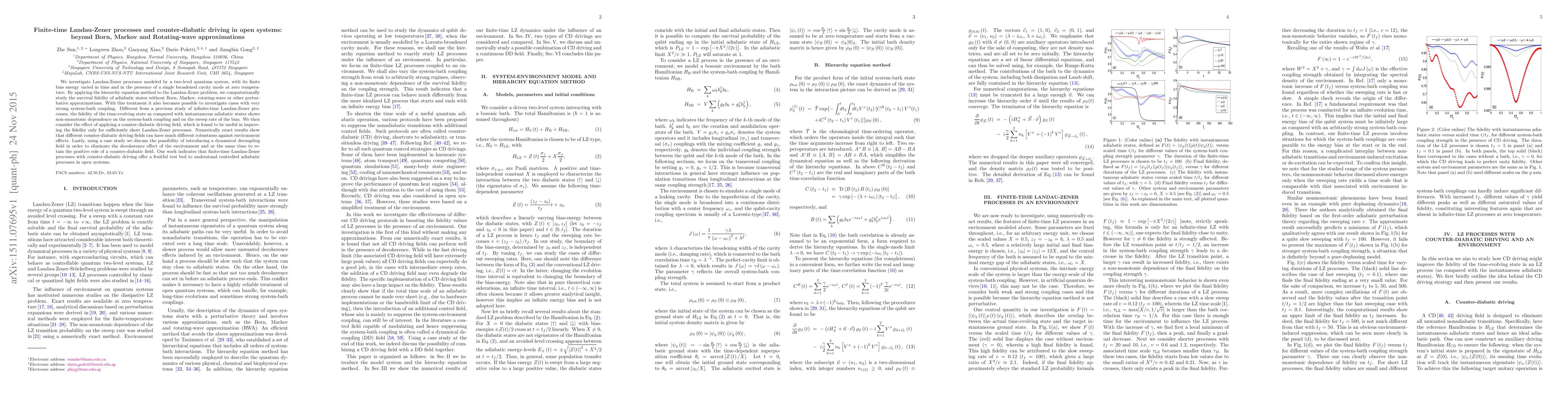 This paper studies finite-time Landau-Zener processes in a two-level quantum system with strong system-bath coupling, beyond traditional perturbative approximations. It finds that counter-diabatic driving can improve fidelity but only for short processes, and discusses the potential for dynamical decoupling to mitigate decoherence effects.