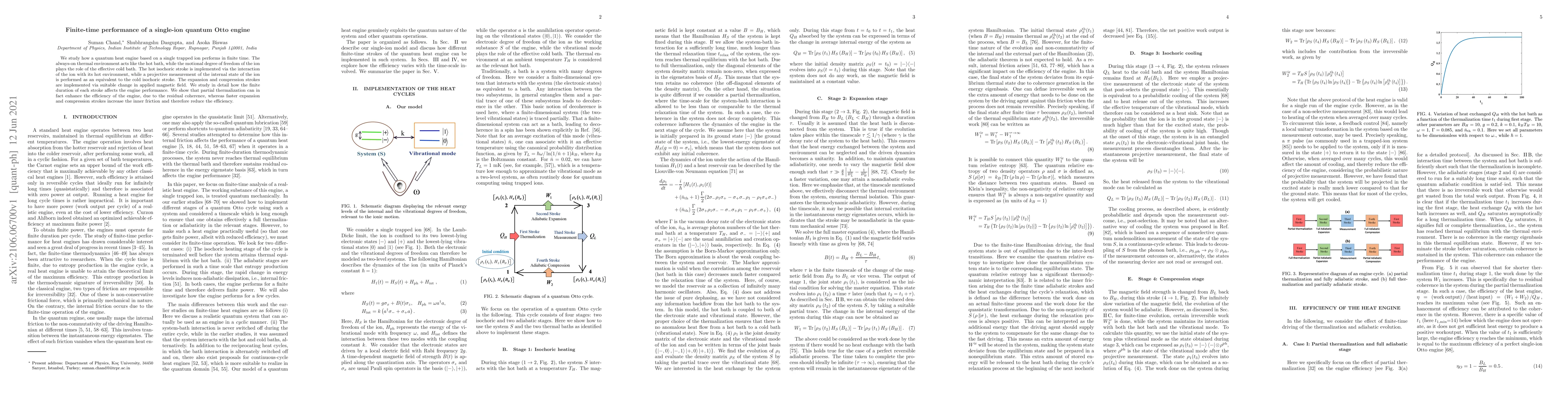This paper investigates the finite-time performance of a single-ion quantum Otto engine, analyzing how the efficiency is affected by the duration of each stroke. The study finds that partial thermalization can boost efficiency due to residual coherence, while faster strokes increase inner friction, thereby reducing efficiency.