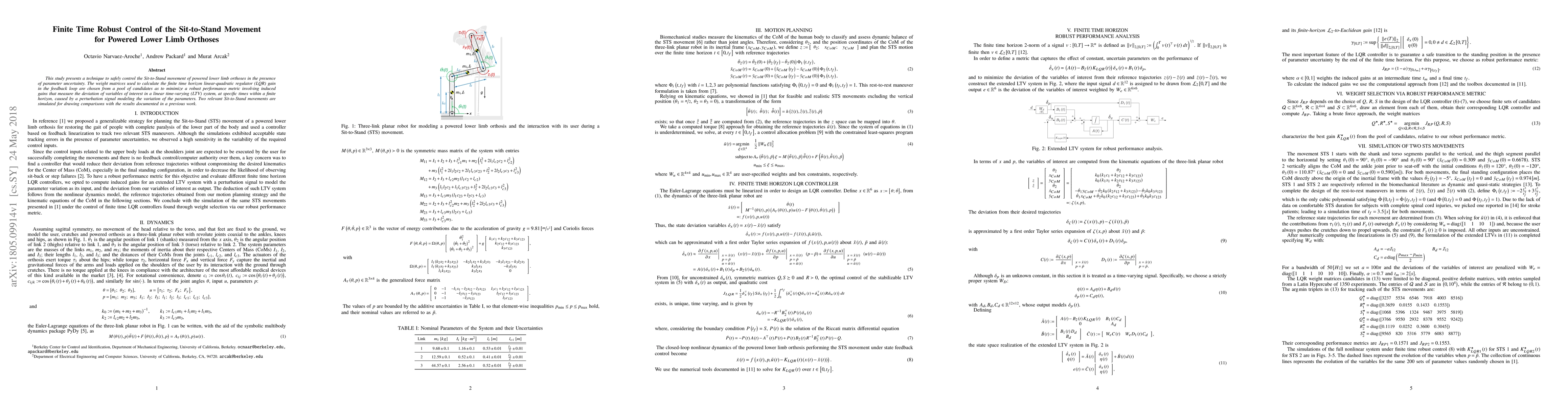 This study develops a finite time robust control technique for Sit-to-Stand movements in powered lower limb orthoses, optimizing weight matrices in the LQR gain to minimize performance deviations due to parameter uncertainty. Simulation results compare the proposed method with previous work.