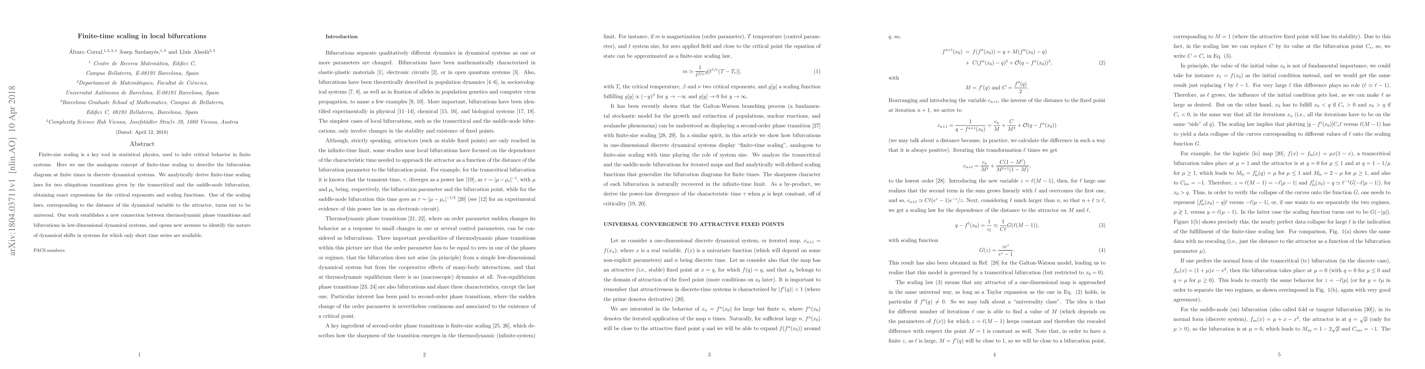 This paper introduces finite-time scaling to analyze bifurcations in discrete dynamical systems, deriving exact expressions for critical exponents and scaling functions for transcritical and saddle-node bifurcations. It establishes a universal scaling law and connects bifurcations to thermodynamic phase transitions, offering new methods for identifying dynamical shifts in systems with limited data.