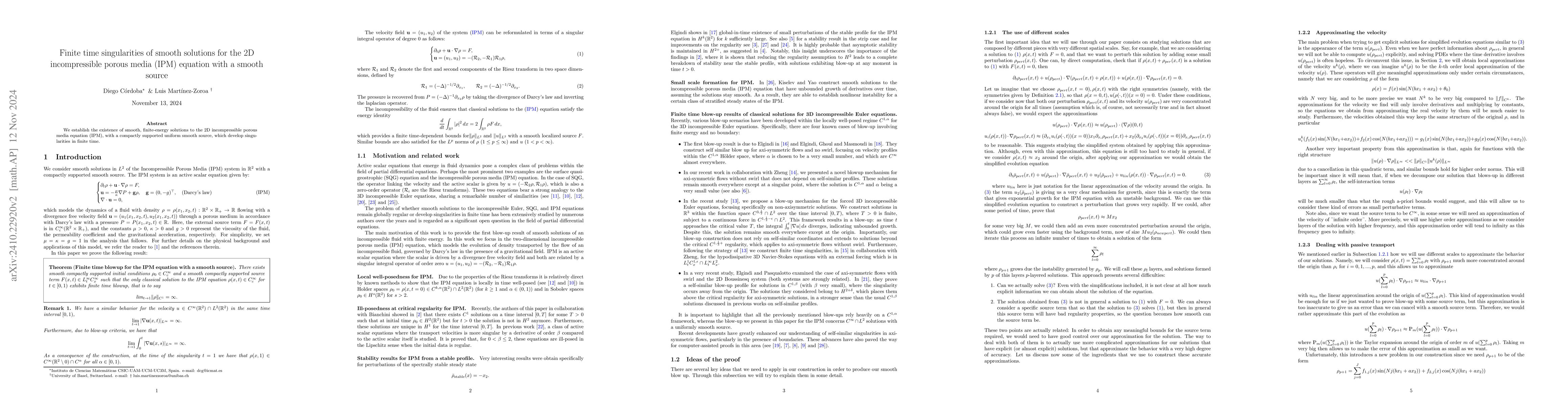 The paper establishes the existence of smooth, finite-energy solutions to the 2D incompressible porous media equation that develop finite time singularities when subjected to a smooth, compactly supported source. This indicates that under certain conditions, solutions can break down in finite time.