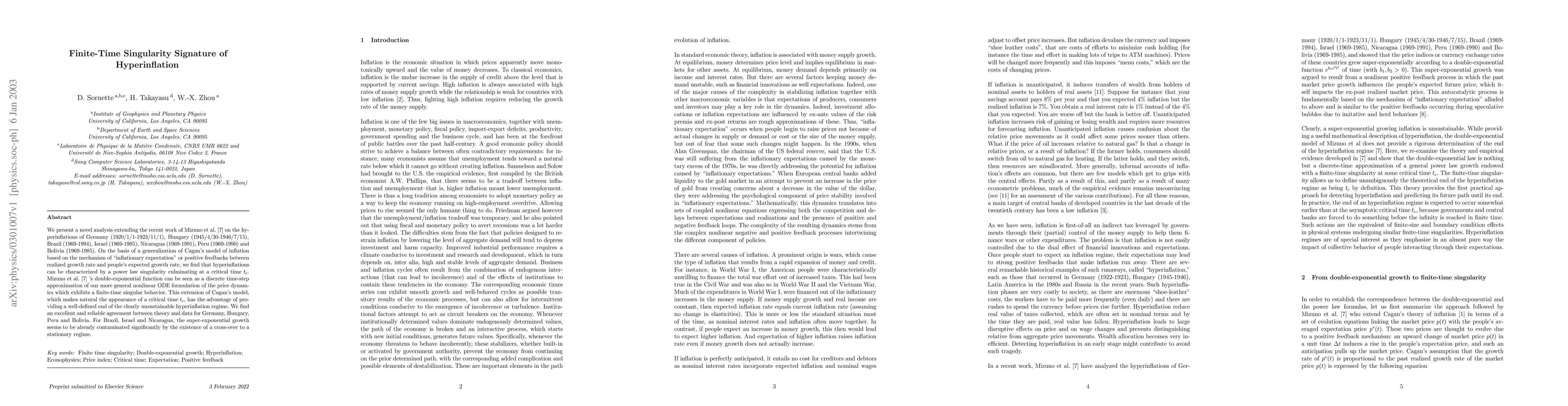 We present a novel analysis extending the recent work of Mizuno et al. [2002] on the hyperinflations of Germany (1920/1/1-1923/11/1), Hungary (1945/4/30-1946/7/15), Brazil (1969-1994), Israel (1969-1985), Nicaragua (1969-1991), Peru (1969-1990) and Bolivia (1969-1985). On the basis of a generalization of Cagan's model of inflation based on the mechanism of ``inflationary expectation'' or positive feedbacks between realized growth rate and people's expected growth rate, we find that hyperinflations can be characterized by a power law singularity culminating at a critical time $t_c$. Mizuno et al.'s double-exponential function can be seen as a discrete time-step approximation of our more general nonlinear ODE formulation of the price dynamics which exhibits a finite-time singular behavior. This extension of Cagan's model, which makes natural the appearance of a critical time $t_c$, has the advantage of providing a well-defined end of the clearly unsustainable hyperinflation regime. We find an excellent and reliable agreement between theory and data for Germany, Hungary, Peru and Bolivia. For Brazil, Israel and Nicaragua, the super-exponential growth seems to be already contaminated significantly by the existence of a cross-over to a stationary regime.