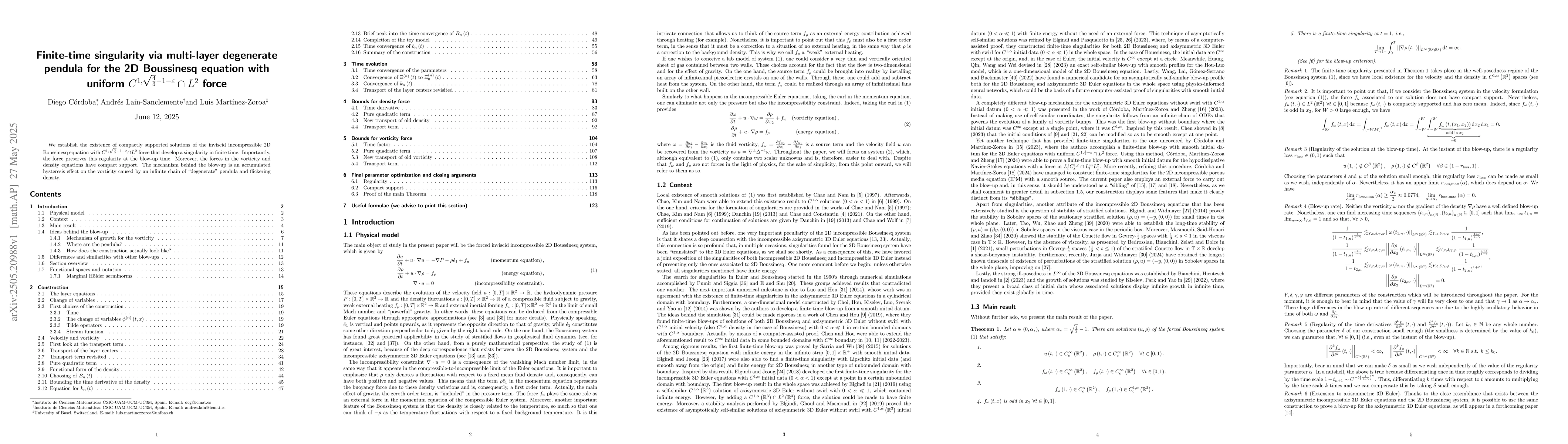 The paper introduces a unique mechanism of singularity formation via multi-layer degenerate pendula and flickering density, distinct from previous studies on Boussinesq equation singularities.