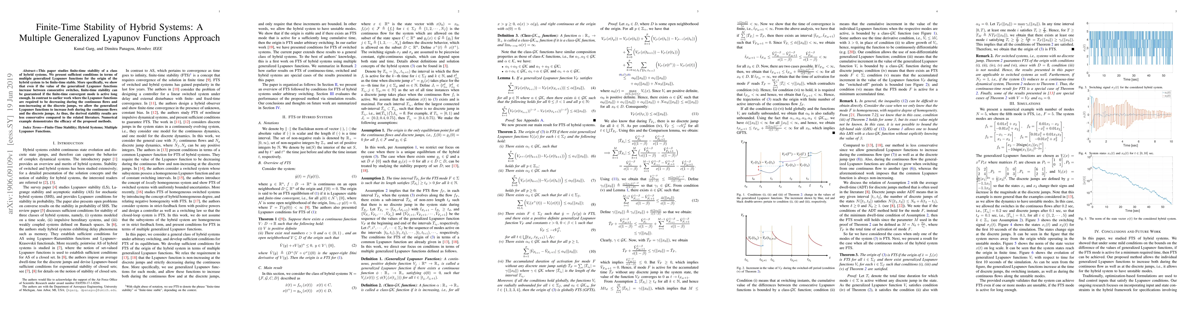 This paper investigates finite-time stability for hybrid systems using multiple generalized Lyapunov functions, allowing them to increase during continuous flows and discrete jumps, thus providing less conservative stability conditions than previous methods. Numerical examples validate the effectiveness of the proposed approach.