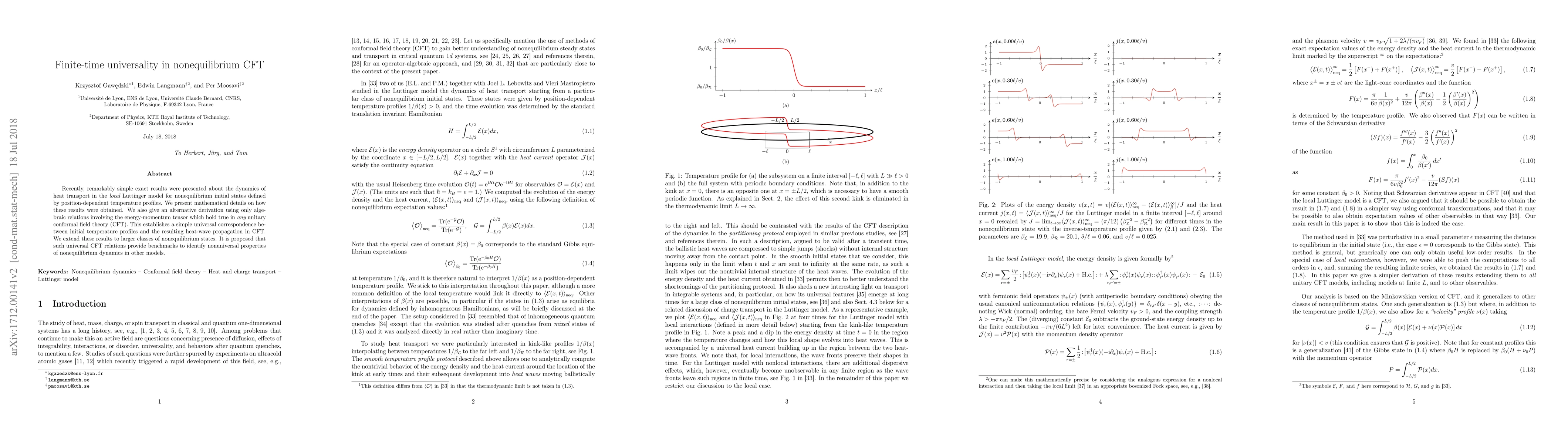 Recently, remarkably simple exact results were presented about the dynamics of heat transport in the local Luttinger model for nonequilibrium initial states defined by position-dependent temperature profiles. We present mathematical details on how these results were obtained. We also give an alternative derivation using only algebraic relations involving the energy-momentum tensor which hold true in any unitary conformal field theory (CFT). This establishes a simple universal correspondence between initial temperature profiles and the resulting heat-wave propagation in CFT. We extend these results to larger classes of nonequilibrium states. It is proposed that such universal CFT relations provide benchmarks to identify nonuniversal properties of nonequilibrium dynamics in other models.