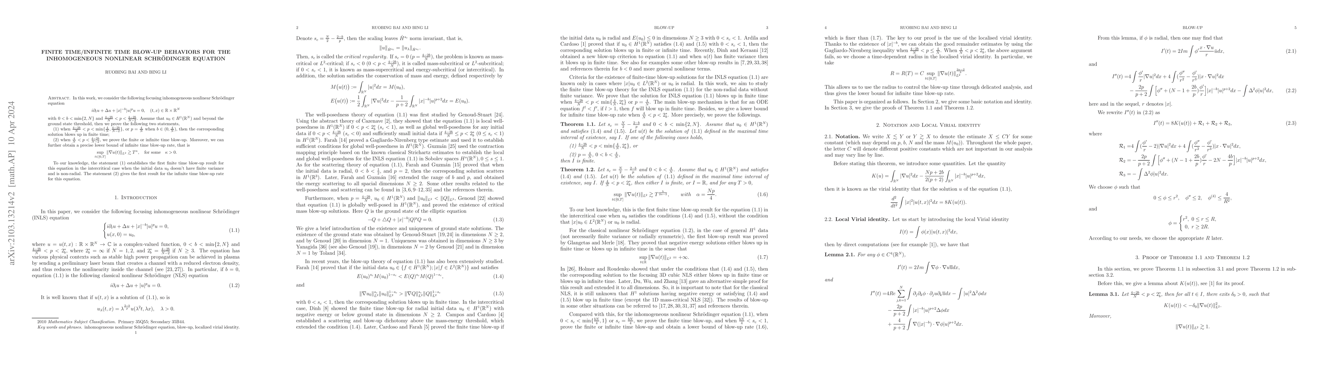 This research investigates the blow-up behaviors of solutions to the focusing inhomogeneous nonlinear Schrödinger equation under specific conditions. It proves finite time blow-up for certain parameter ranges and establishes a precise lower bound for the infinite time blow-up rate, marking the first results for these phenomena in the intercritical case.