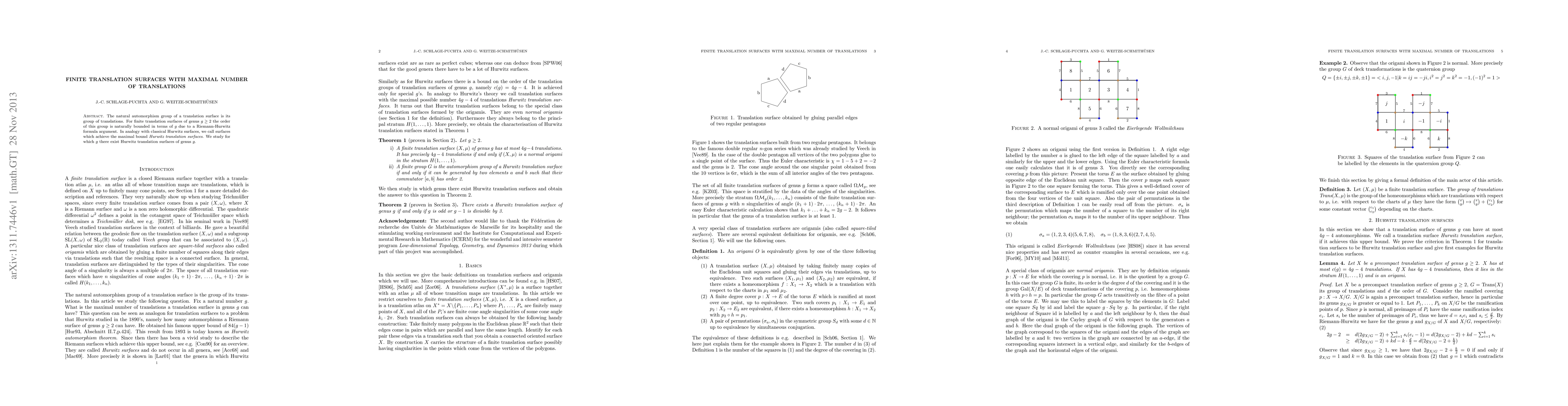 The natural automorphism group of a translation surface is its group of translations. For finite translation surfaces of genus g > 1 the order of this group is naturally bounded in terms of g due to a Riemann-Hurwitz formula argument. In analogy with classical Hurwitz surfaces, we call surfaces which achieve the maximal bound Hurwitz translation surfaces. We study for which g there exist Hurwitz translation surfaces of genus g.