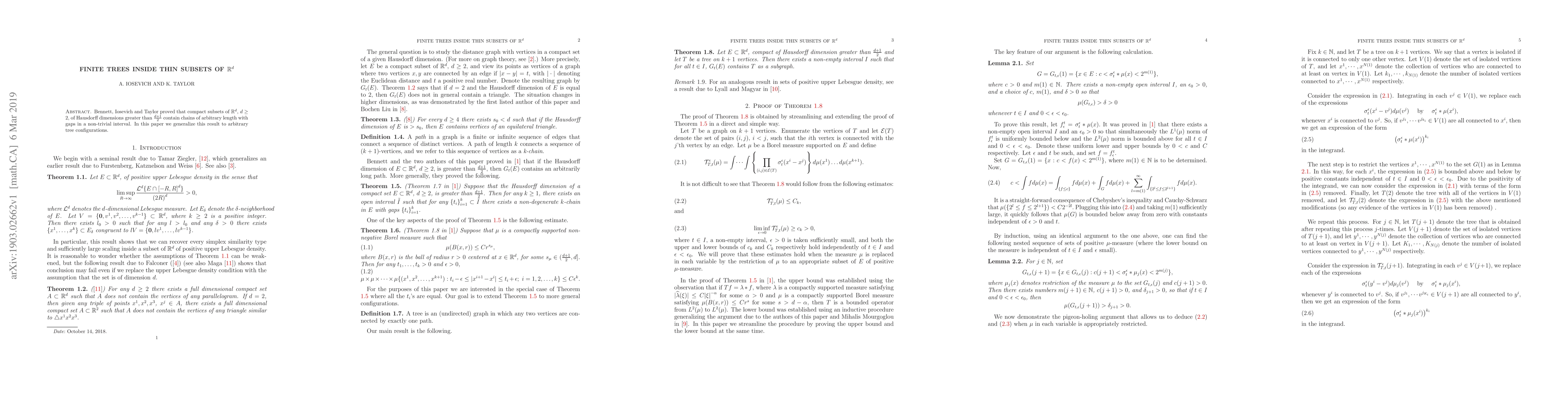 This paper generalizes the result by Bennett, Iosevich, and Taylor, showing that thin subsets of ${\Bbb R}^d$ with Hausdorff dimensions greater than $\frac{d+1}{2}$ contain finite trees of arbitrary complexity, extending beyond just chains with gaps.
