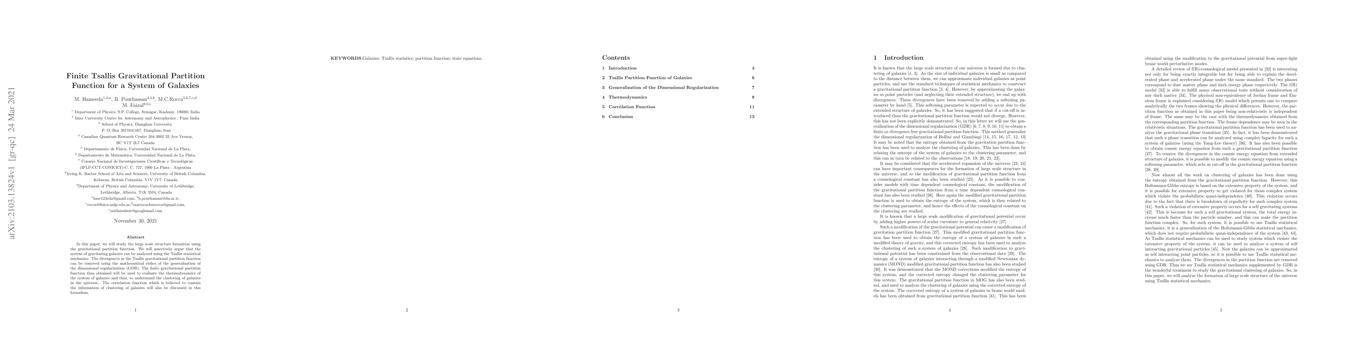 In this paper, we will study the large scale structure formation using the gravitational partition function. We will assertively argue that the system of gravitating galaxies can be analyzed using the Tsallis statistical mechanics. The divergences in the Tsallis gravitational partition function can be removed using the mathematical riches of the generalization of the dimensional regularization (GDR). The finite gravitational partition function thus obtained will be used to evaluate the thermodynamics of the system of galaxies and thus, to understand the clustering of galaxies in the universe. The correlation function which is believed to contain the information of clustering of galaxies will also be discussed in this formalism.
