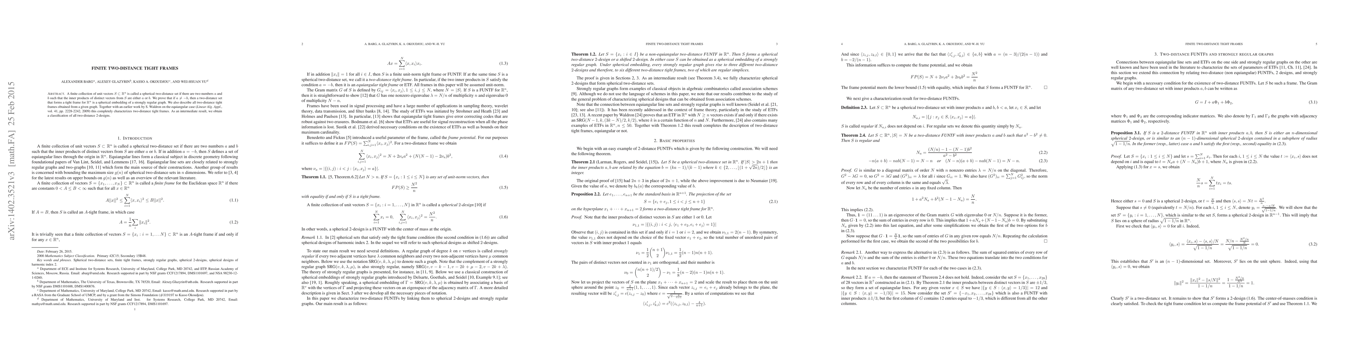 Researchers prove that a finite two-distance set can form a tight frame for $oxed{ ext{any } obreak{ } obreak{n}}$ space if it's a spherical embedding of a strongly regular graph, characterizing all possible cases.