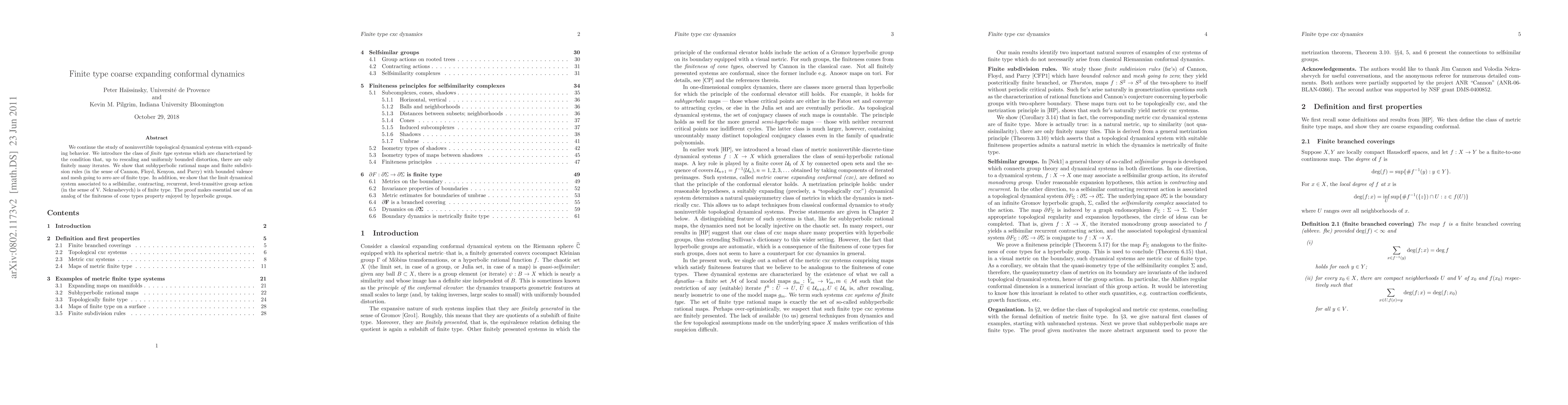 We continue the study of non-invertible topological dynamical systems with expanding behavior. We introduce the class of {\em finite type} systems which are characterized by the condition that, up to rescaling and uniformly bounded distortion, there are only finitely many iterates. We show that subhyperbolic rational maps and finite subdivision rules (in the sense of Cannon, Floyd, Kenyon, and Parry) with bounded valence and mesh going to zero are of finite type. In addition, we show that the limit dynamical system associated to a selfsimilar, contracting, recurrent, level-transitive group action (in the sense of V. Nekrashevych) is of finite type. The proof makes essential use of an analog of the finiteness of cone types property enjoyed by hyperbolic groups.
