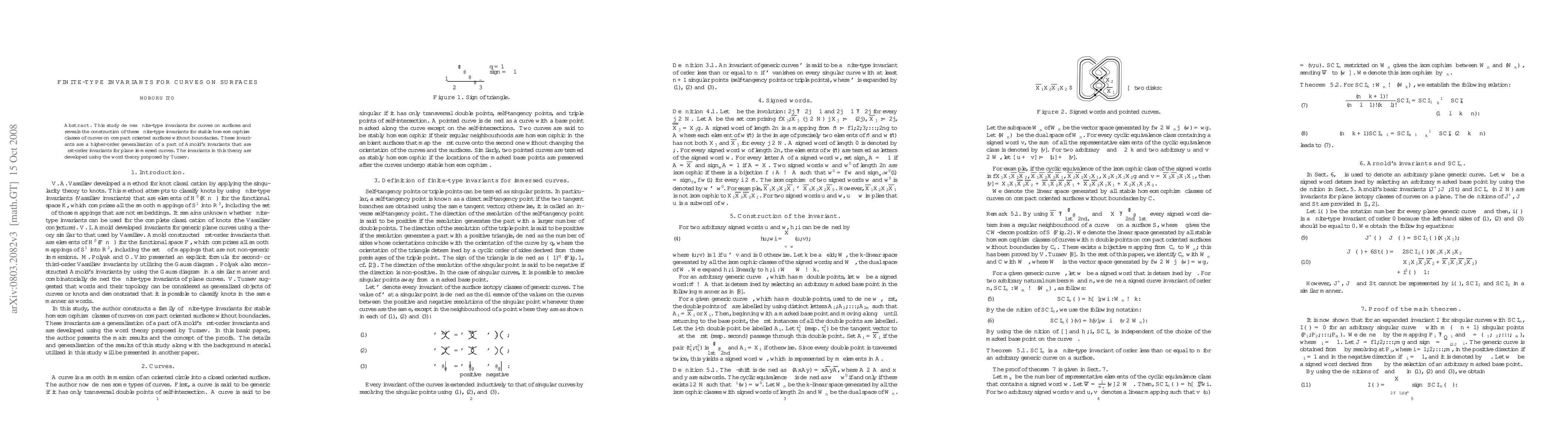 This paper introduces finite-type invariants for curves on surfaces, generalizing Arnold's first-order invariants for plane curves, and constructs these invariants for stable homeomorphism classes on compact oriented surfaces. The development leverages Turaev's word theory.