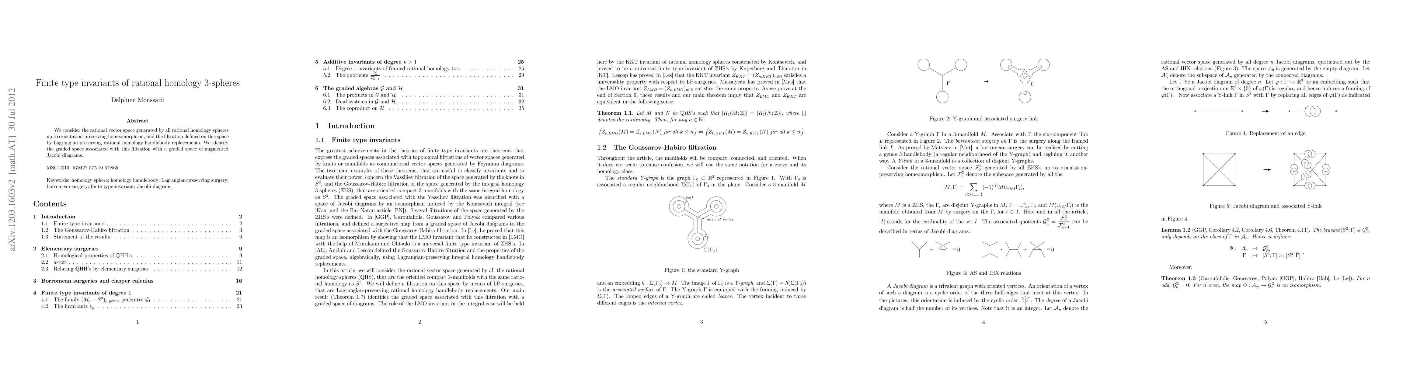 This research identifies the graded space formed by rational homology 3-spheres under orientation-preserving homeomorphisms with a graded space of augmented Jacobi diagrams, via a filtration process involving Lagrangian-preserving rational homology handlebody replacements. The study reveals finite type invariants for these 3-spheres.