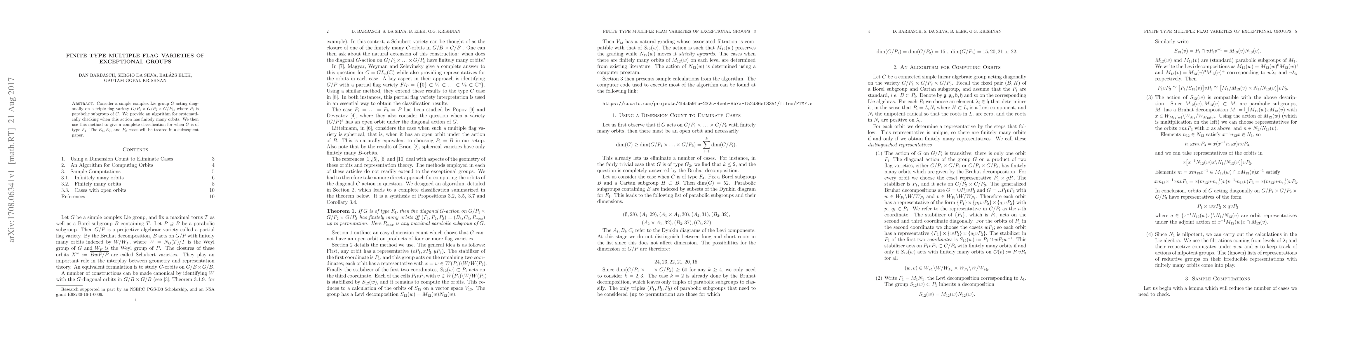 Researchers develop an algorithm to systematically check if a simple complex Lie group acting on a triple flag variety has finitely many orbits. They use this method to classify when the group is of type F4.