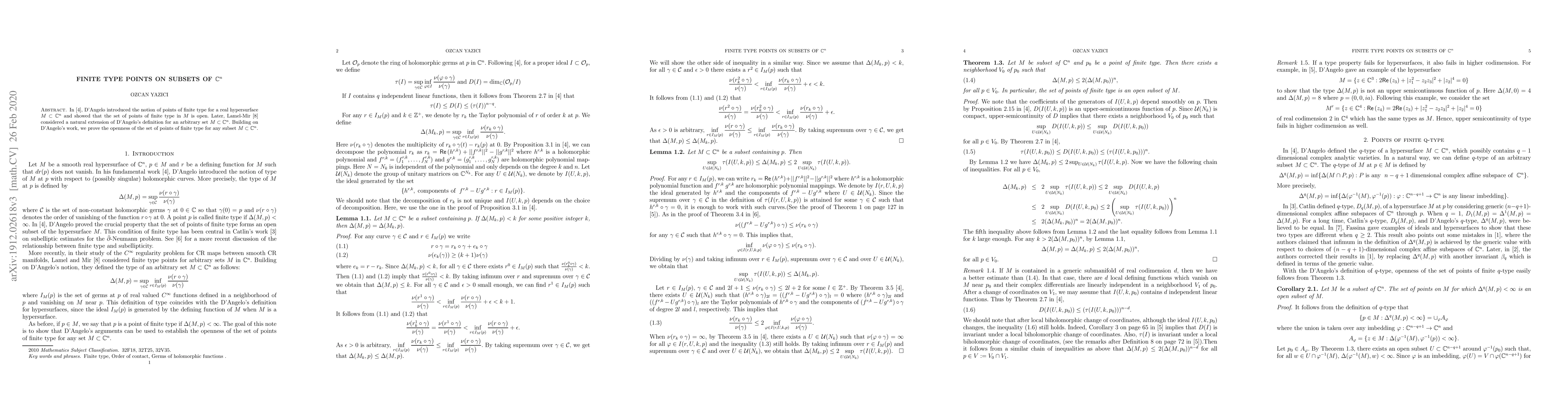 In [4], D'Angelo introduced the notion of points of finite type for a real hypersurface $M$ in $\mathbb C^n$ and showed that the set of points of finite type in $M$ is open. Later, Lamel-Mir [8] considered a natural extension of D'Angelo's definition for an arbitrary set $M$ in $\mathbb C^n$. Building on D'Angelo's work, we prove the openness of the set of points of finite type for any subset $M$ in $ \mathbb C^n.$
