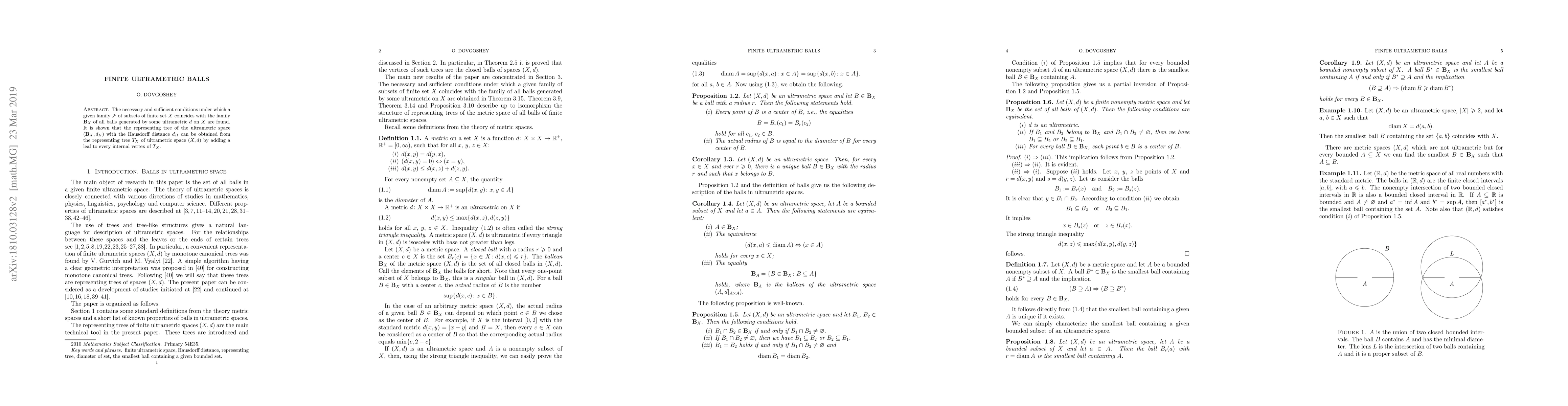 This paper identifies the conditions for a family of subsets $\mathcal{F}$ of a finite set $X$ to match the balls generated by an ultrametric $d$ on $X$. It demonstrates that the representing tree of the ultrametric space $(\mathbf{B}_X, d_H)$ can be derived from the tree $T_X$ of $(X, d)$ by appending a leaf to each internal vertex.