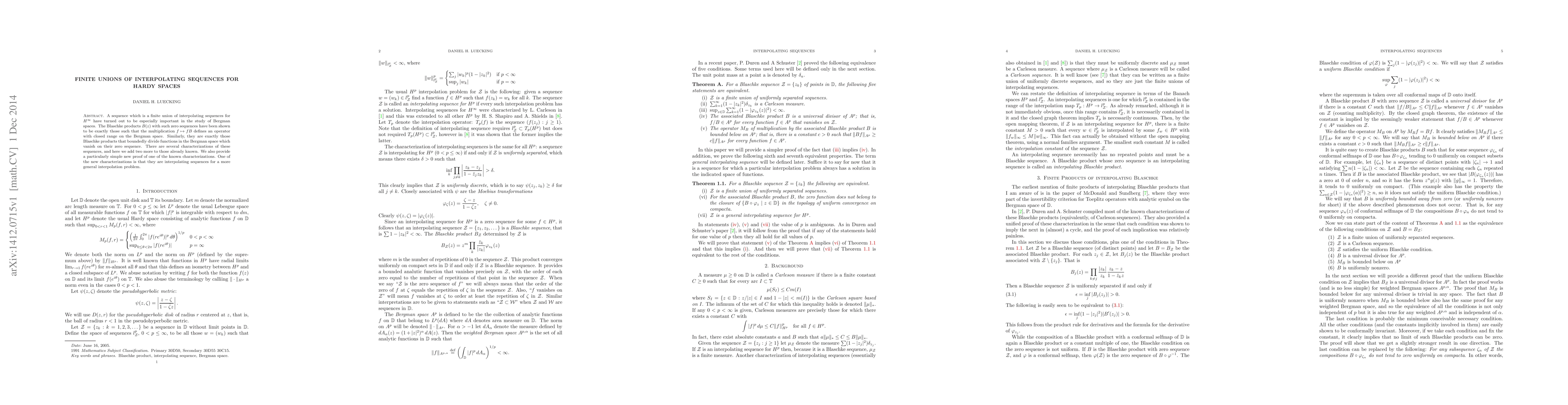 A sequence which is a finite union of interpolating sequences for $H^\infty$ have turned out to be especially important in the study of Bergman spaces. The Blaschke products $B(z)$ with such zero sequences have been shown to be exactly those such that the multiplication $f \mapsto fB$ defines an operator with closed range on the Bergman space. Similarly, they are exactly those Blaschke products that boundedly divide functions in the Bergman space which vanish on their zero sequence. There are several characterizations of these sequences, and here we add two more to those already known. We also provide a particularly simple new proof of one of the known characterizations. One of the new characterizations is that they are interpolating sequences for a more general interpolation problem.