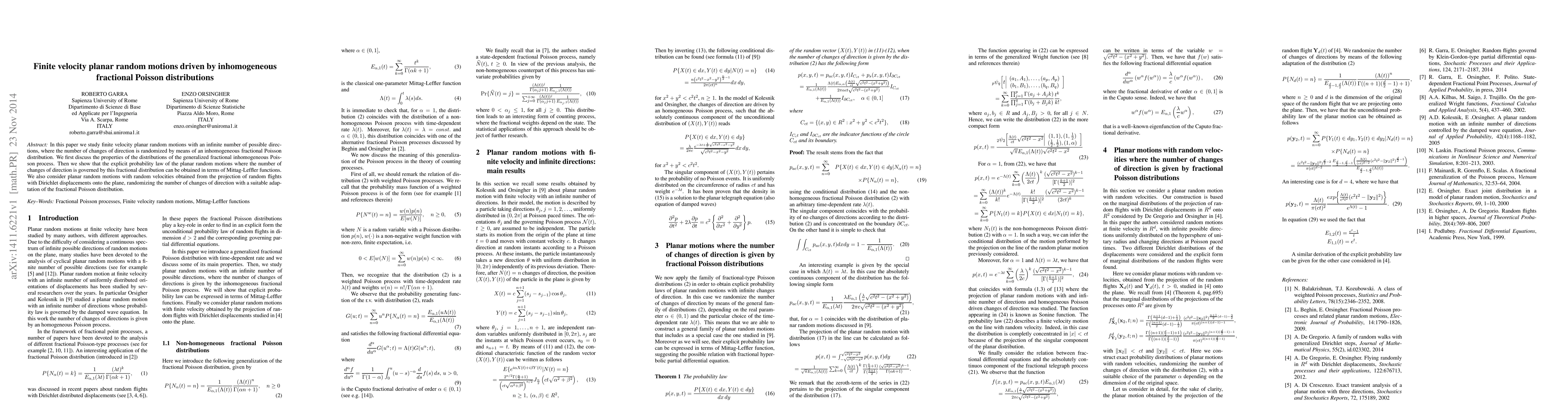 This paper investigates finite velocity planar random motions characterized by an infinite number of possible directions, where direction changes are governed by an inhomogeneous fractional Poisson distribution. The study derives the explicit probability law of these motions using Mittag-Leffler functions and also explores motions with random velocities derived from projected random flights.