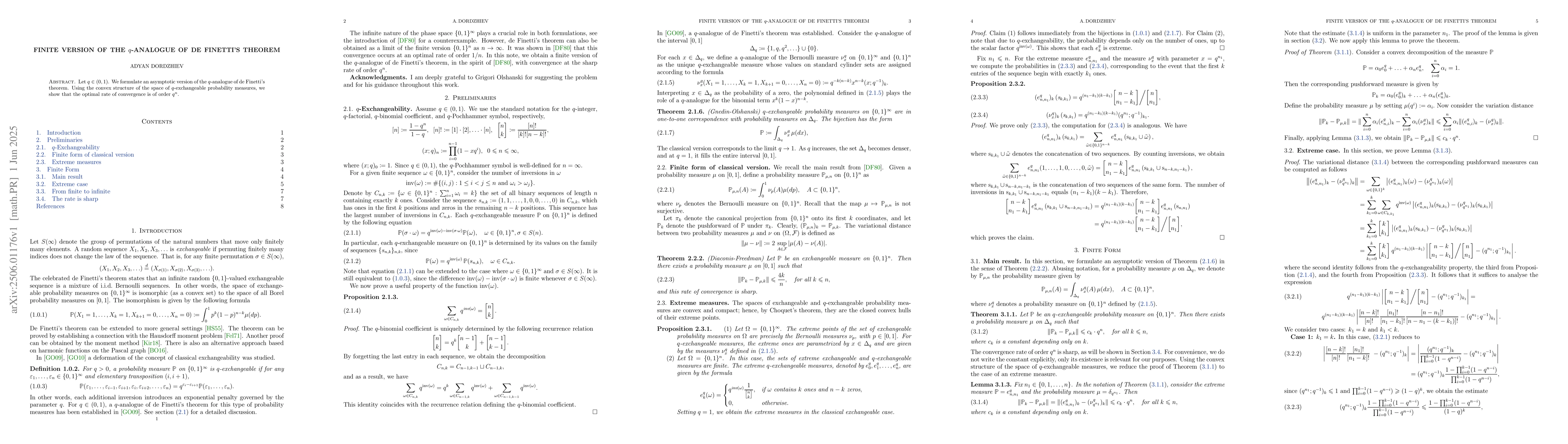 The development of an asymptotic $q$-analogue of de Finetti's theorem, demonstrating the convergence rate using the convexity of $q$-exchangeable measures.