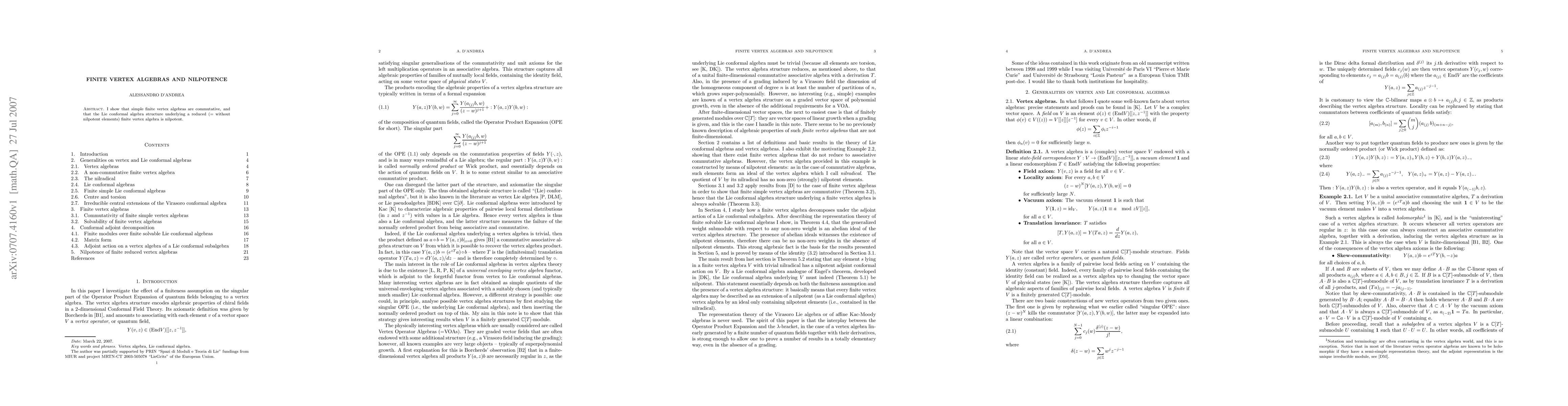 Simple finite vertex algebras exhibit commutative properties. The Lie conformal algebra structure in reduced finite vertex algebras is shown to be nilpotent.