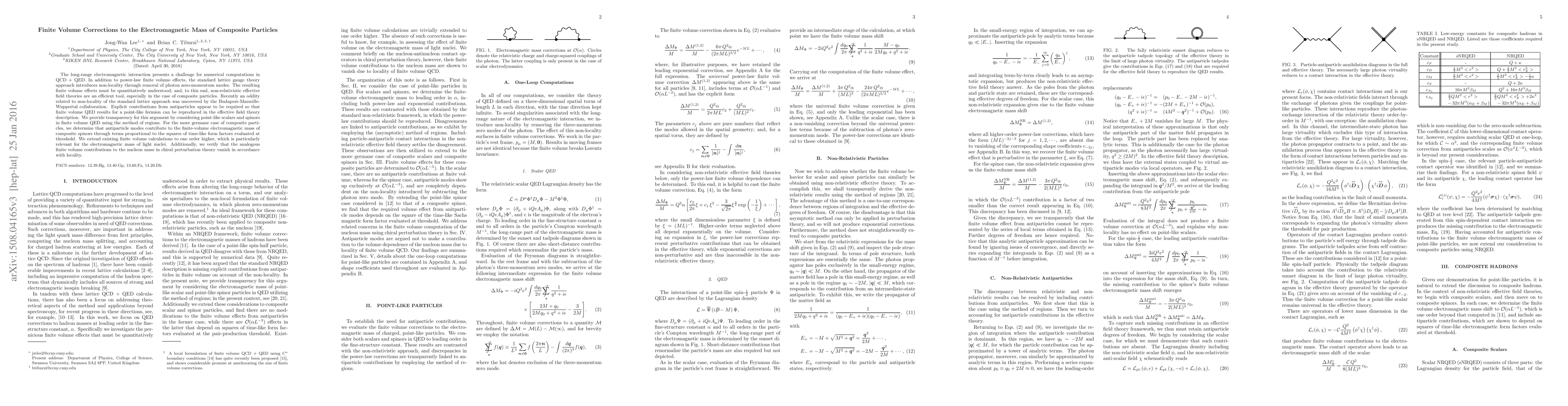 Researchers find that antiparticle modes contribute to the finite-volume electromagnetic mass of composite particles, particularly relevant for light nuclei, through terms proportional to time-like form factors evaluated at threshold.