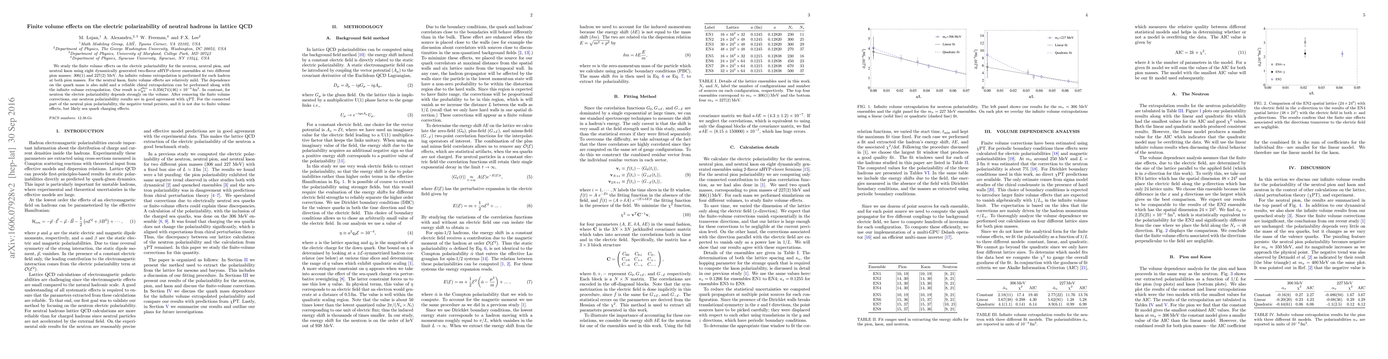 This paper investigates finite volume effects on the electric polarizability of neutron, neutral pion, and neutral kaon using lattice QCD simulations. The study finds mild finite volume effects for the neutral kaon, while the neutron's polarizability shows strong volume dependence, yet aligns with $\chi$PT after corrections. The neutral pion's polarizability trend is unaffected by finite volume and likely due to sea quark charging effects.