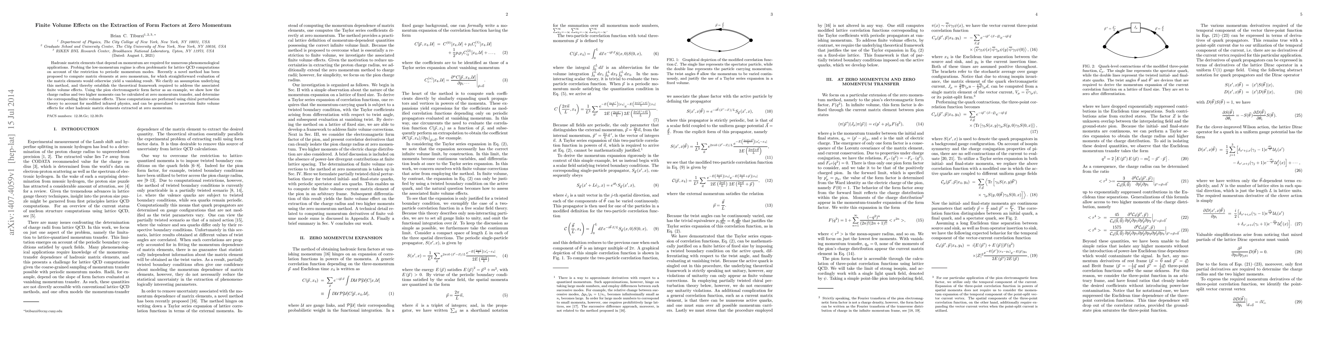 This paper clarifies the theoretical framework for extracting form factors at zero momentum in lattice QCD, addressing finite volume effects. Using the pion electromagnetic form factor, it demonstrates how to calculate charge radius and higher moments at zero momentum transfer, employing chiral perturbation theory to account for infrared modifications.