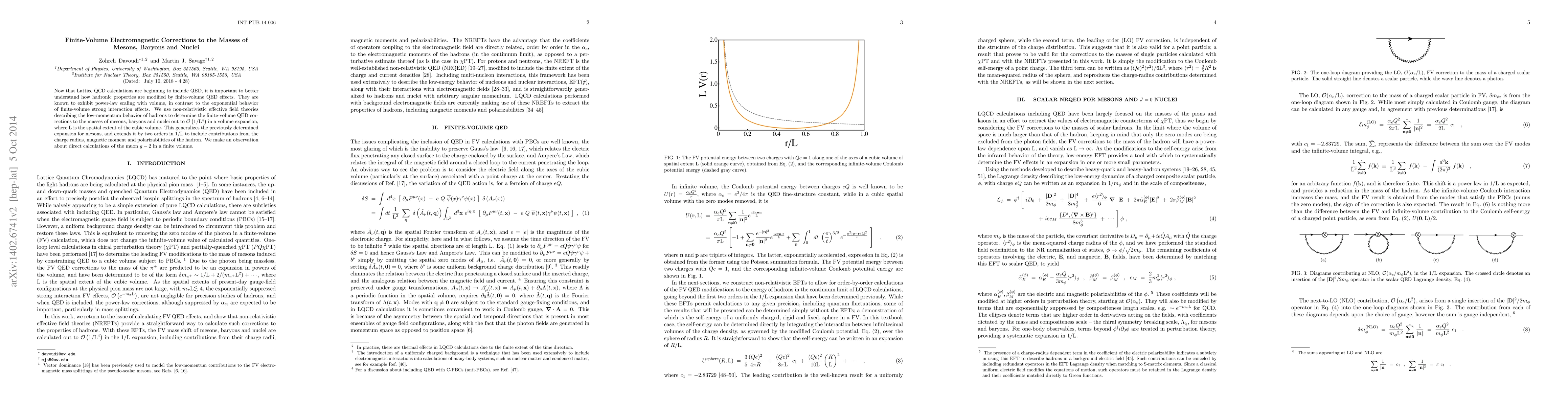 Now that Lattice QCD calculations are beginning to include QED, it is important to better understand how hadronic properties are modified by finite-volume QED effects. They are known to exhibit power-law scaling with volume, in contrast to the exponential behavior of finite-volume strong interaction effects. We use non-relativistic effective field theories describing the low-momentum behavior of hadrons to determine the finite-volume QED corrections to the masses of mesons, baryons and nuclei out to O(1/L^4) in a volume expansion, where L is the spatial extent of the cubic volume. This generalizes the previously determined expansion for mesons, and extends it by two orders in 1/L to include contributions from the charge radius, magnetic moment and polarizabilities of the hadron. We make an observation about direct calculations of the muon g-2 in a finite volume.