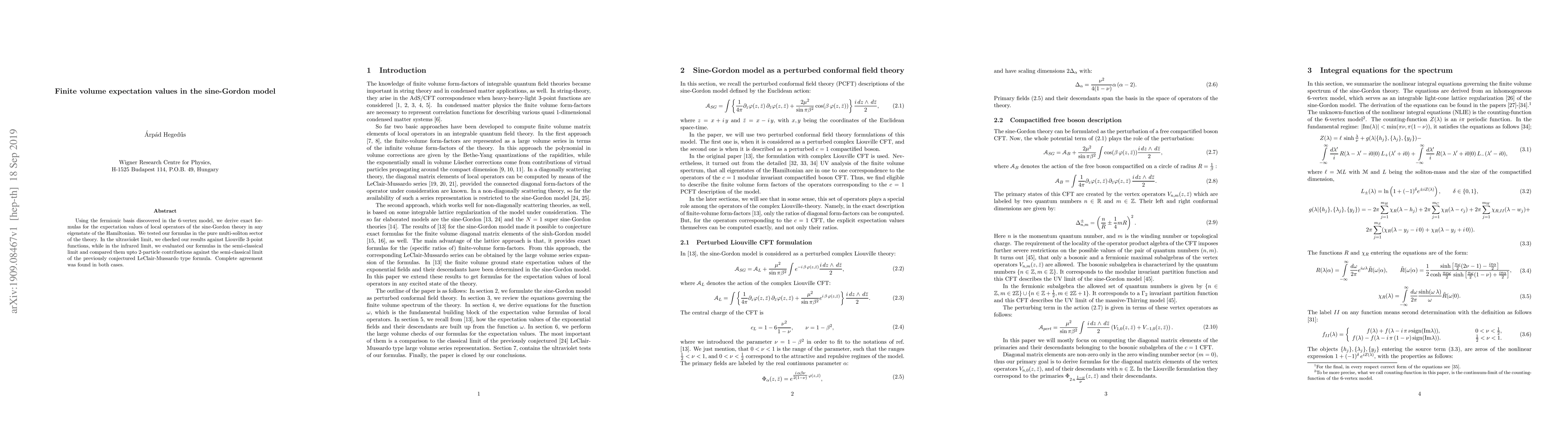 This paper derives exact formulas for the expectation values of local operators in the sine-Gordon model using the fermionic basis from the 6-vertex model. The results are validated against Liouville 3-point functions in the ultraviolet limit and semi-classical approximations in the infrared limit, showing complete agreement.