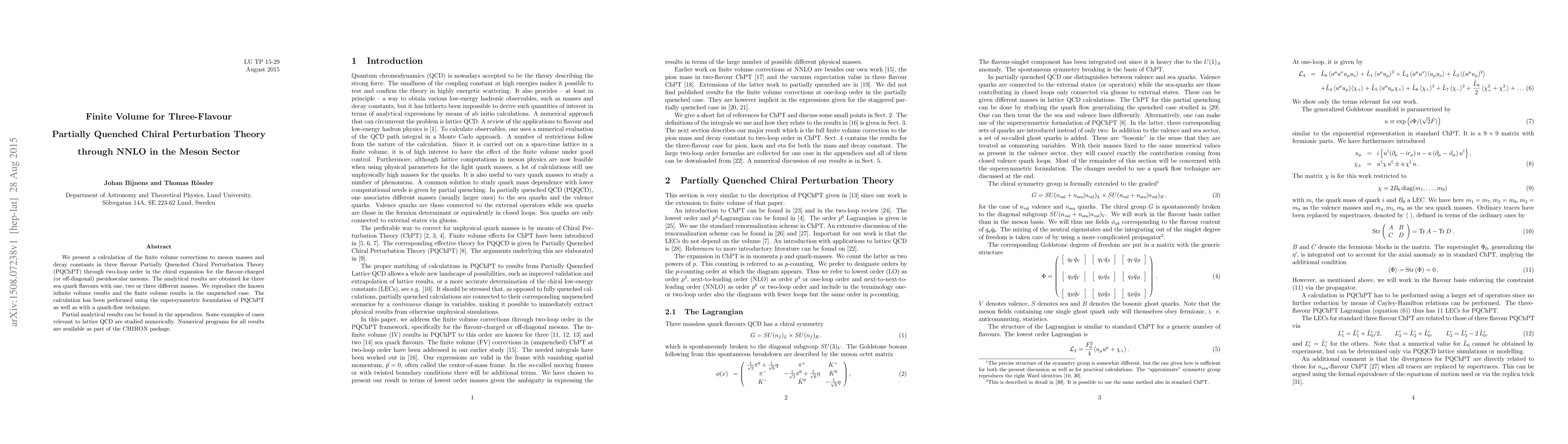 This paper presents a detailed calculation of finite volume corrections for meson masses and decay constants in three-flavour Partially Quenched Chiral Perturbation Theory (PQChPT) up to next-to-next-to-leading order (NNLO). Analytical results are derived for three sea quark flavours with varying masses, employing both the supersymmetric formulation and a quark-flow technique.