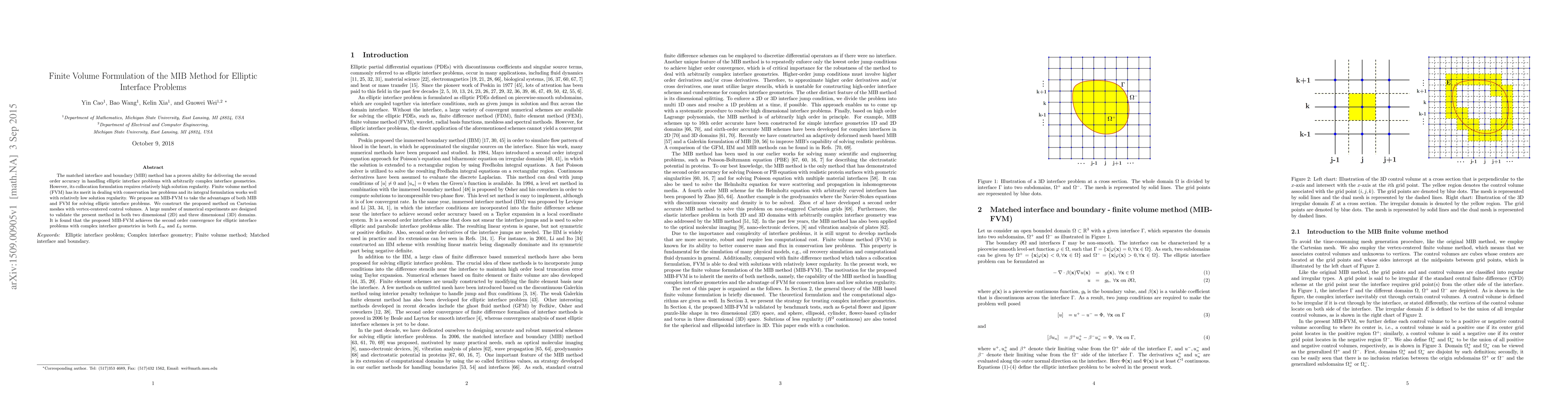 The paper proposes a Finite Volume Formulation of the MIB method to solve elliptic interface problems, combining the accuracy of MIB with the robustness of FVM. Numerical experiments demonstrate the method achieves second-order convergence in both 2D and 3D domains.